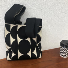 - ["Made of high quality cotton material","Geometric black design with drawstring closure","Fashionable knit style with drawstring bag type","Small size for easy carrying","Suitable for everyday wear"]