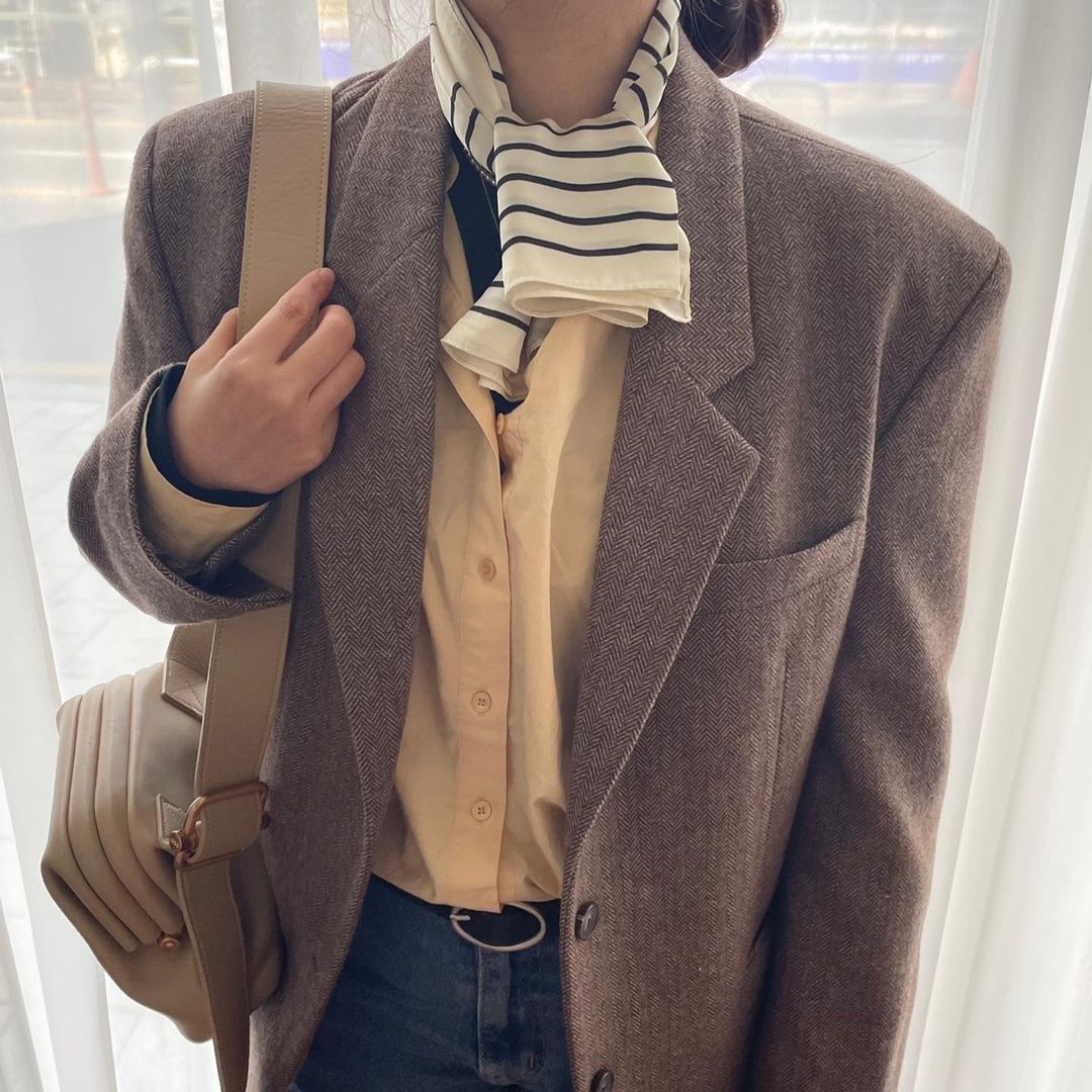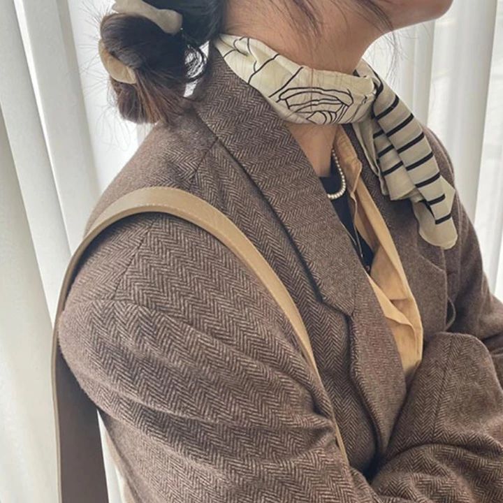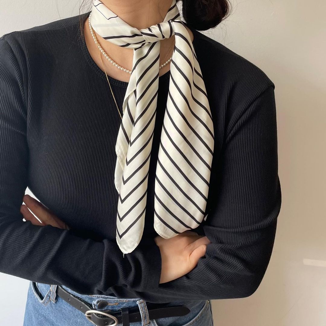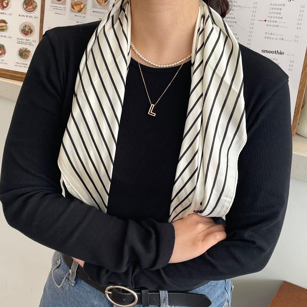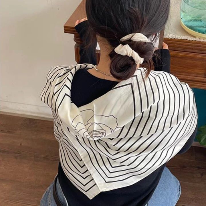 Chic Spring New Striped 70cm Scarf for Commuting, 100% Polyester, Simple and Elegant