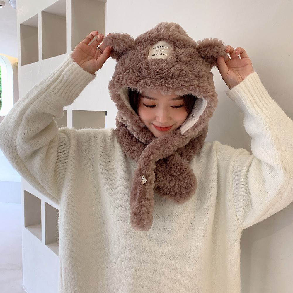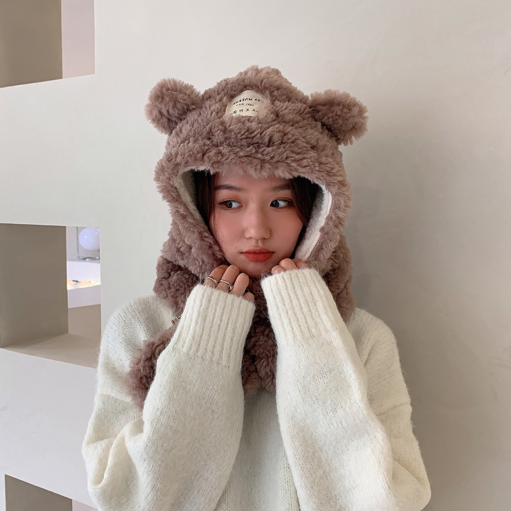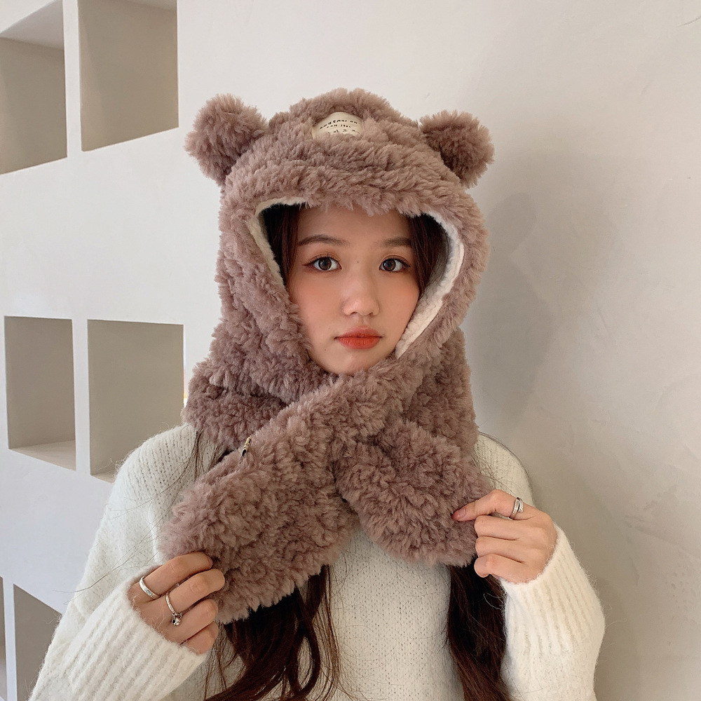 - ["Made of high quality knitting material, keep you warm in winter season","Cute bear ears design, make you look more adorable","Thick plush, hooded scarf, perfect for outdoor activities","Universal applicability, suitable for all ages","Embroidery embellishment, make it more fashionable"]