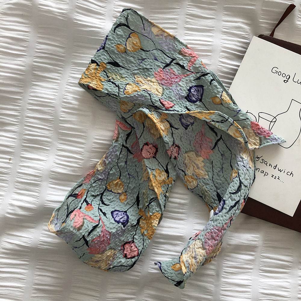 Fashion Floral Wave Dot Scarf for Women with Multiple Options, 10cm Width, 120x10cm-I006S