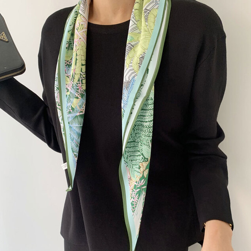 INS Summer Floral Scarf, 120x45cm-M301H, 100% Polyester, Golden Hwa