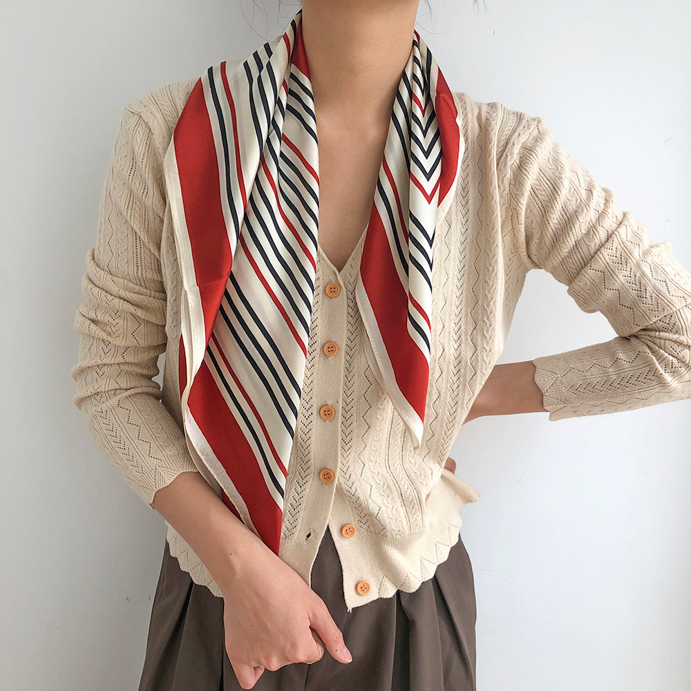 High-end Red Silk Scarf with Striped Pattern, 65x65cm-D805W