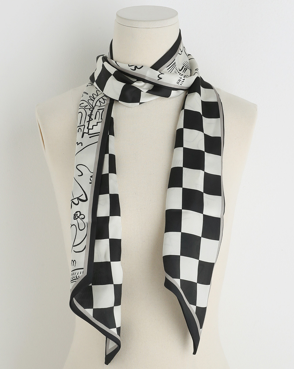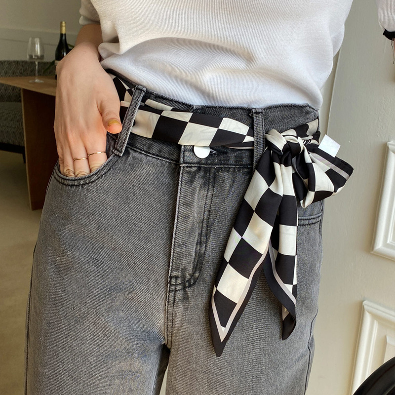 Summer Multi-Functional Korean Style Checkerboard Scarf Belt Waistband Silk Scarf