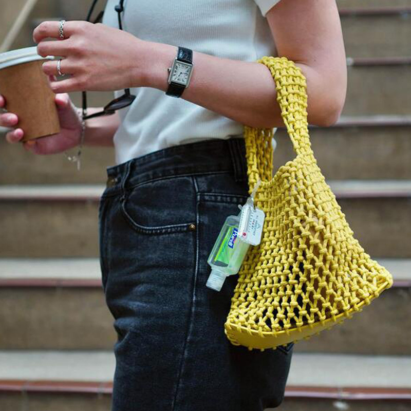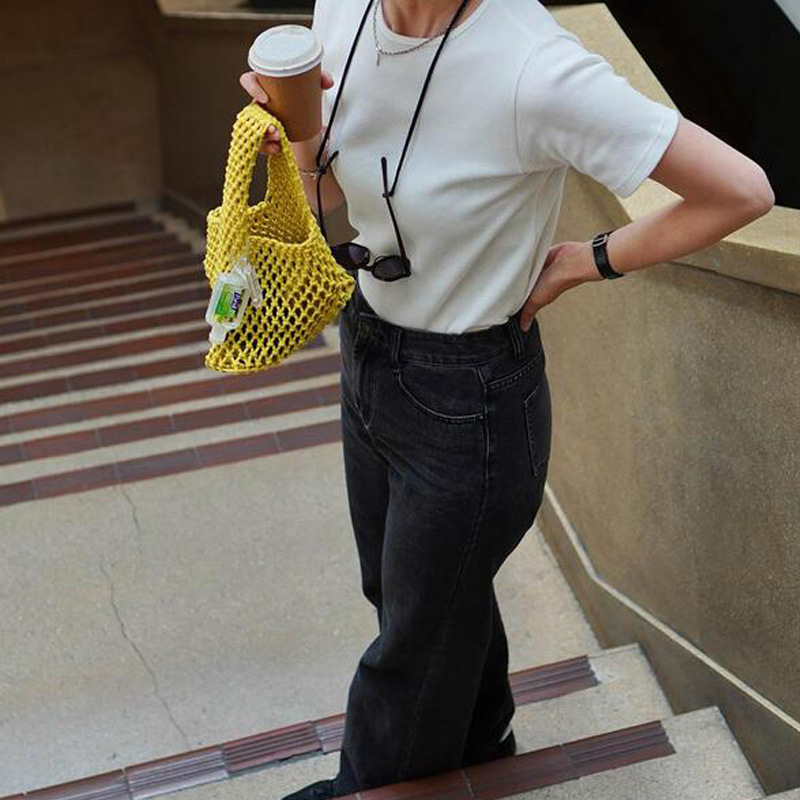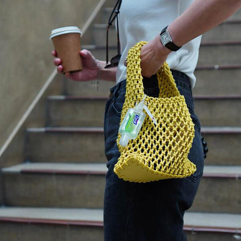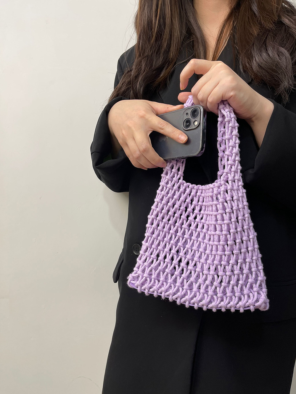 - ["Lightweight and stylish design","Made of high-quality canvas material","Features a single handle for easy carrying","Hollow knit design adds a unique touch","Perfect for everyday use"]