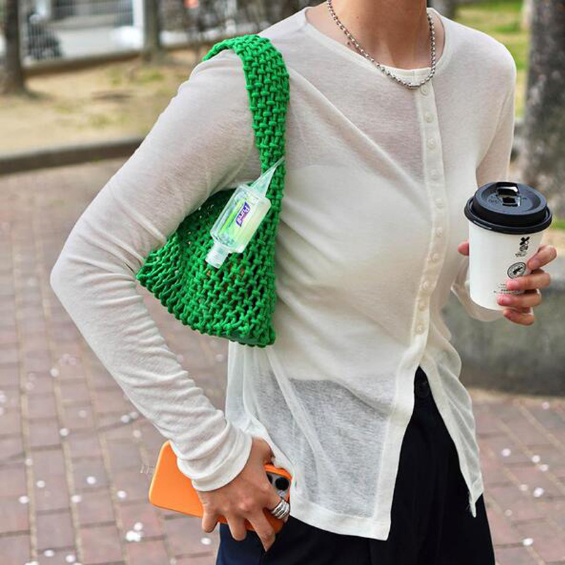 Business Casual Hollow Knit Handmade Bag with Single Handle for Women
