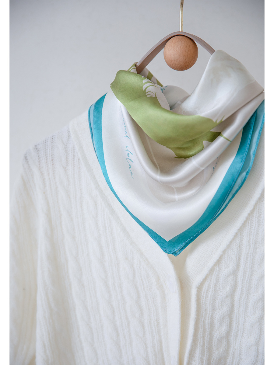 53cm Floral Silk Scarf - Fresh and Sweet Style - 100% Pure Silk from Hangzhou