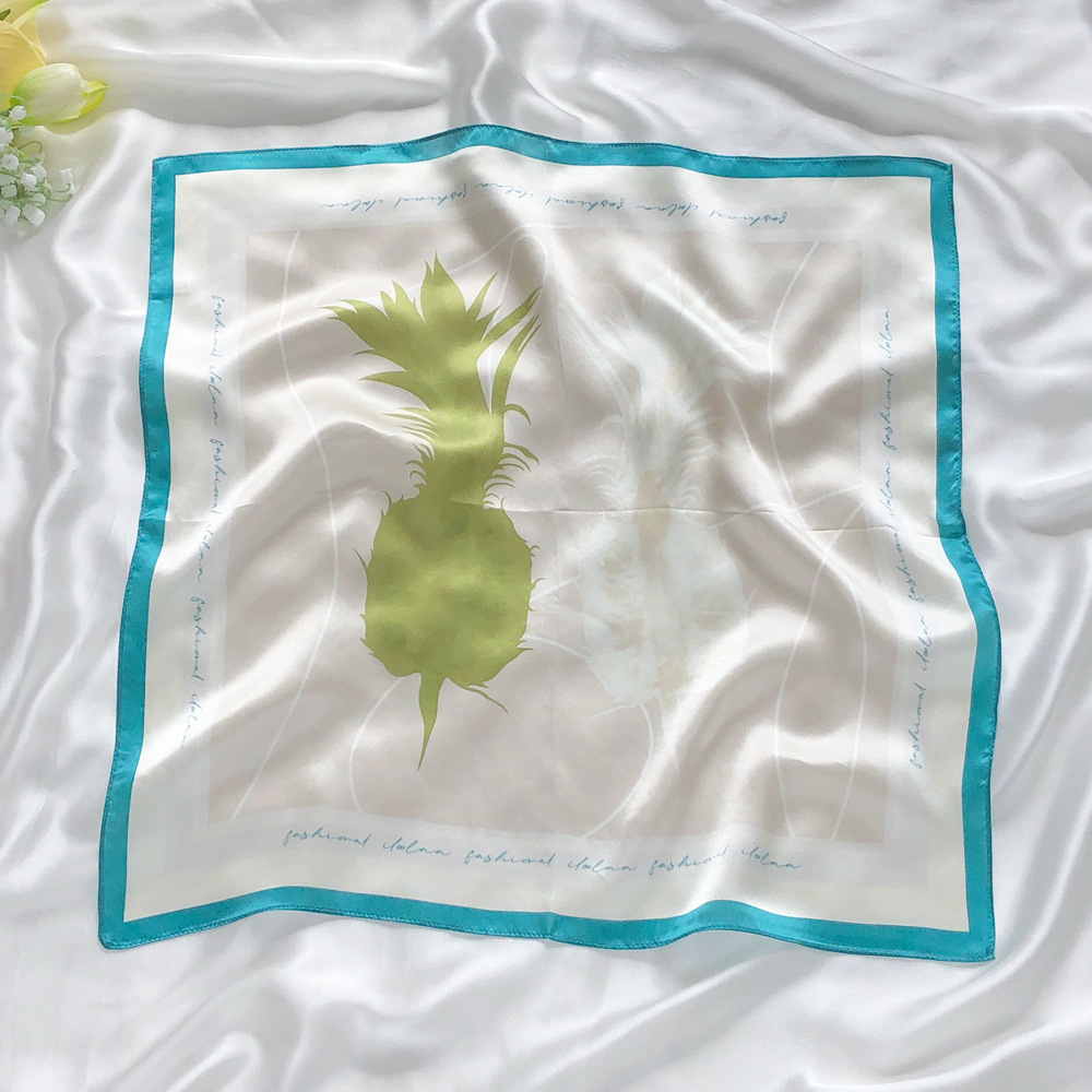{"Size":"53x53cm","Style":"Small Fresh","Origin":"Hangzhou","Fabric Name":"Silk","Length (CM)":"53x53cm","Weaving Method":"Plain Weave","Fashion Element":"Pineapple","Season Suitable":"Spring","Processing Technique":"Printing","Style Classification":"Fresh and Sweet","Main Fabric Composition":"Silk","Fashion Element Category":"Fruits/Foods","Main Fabric Composition Content":"100%"}