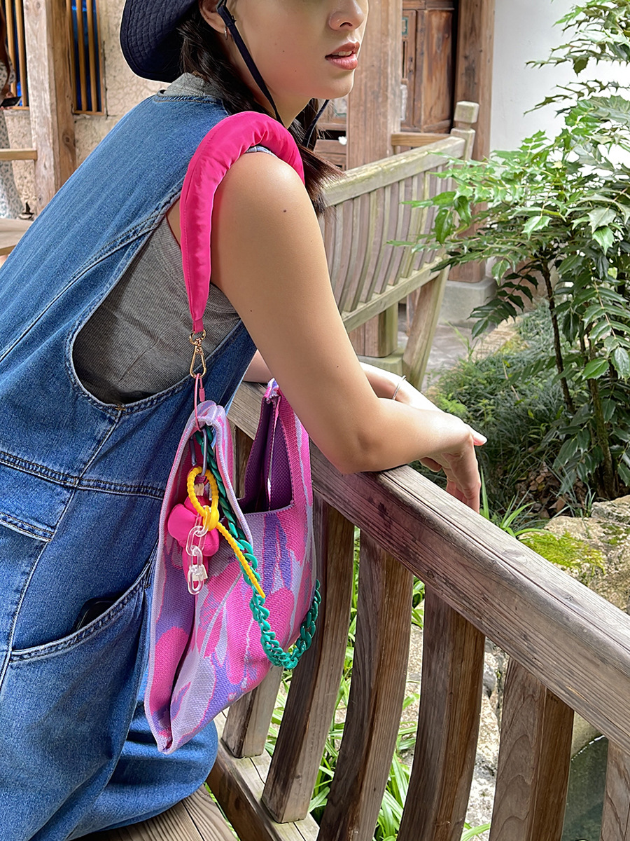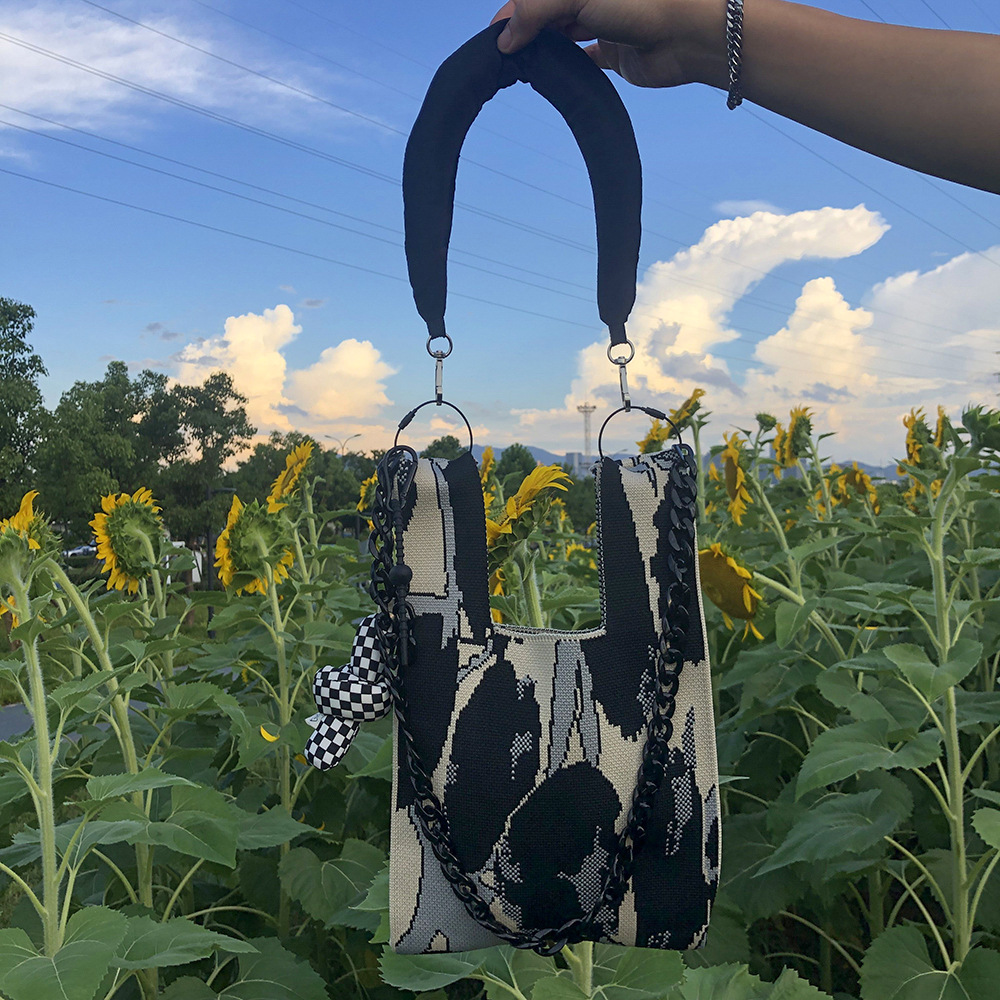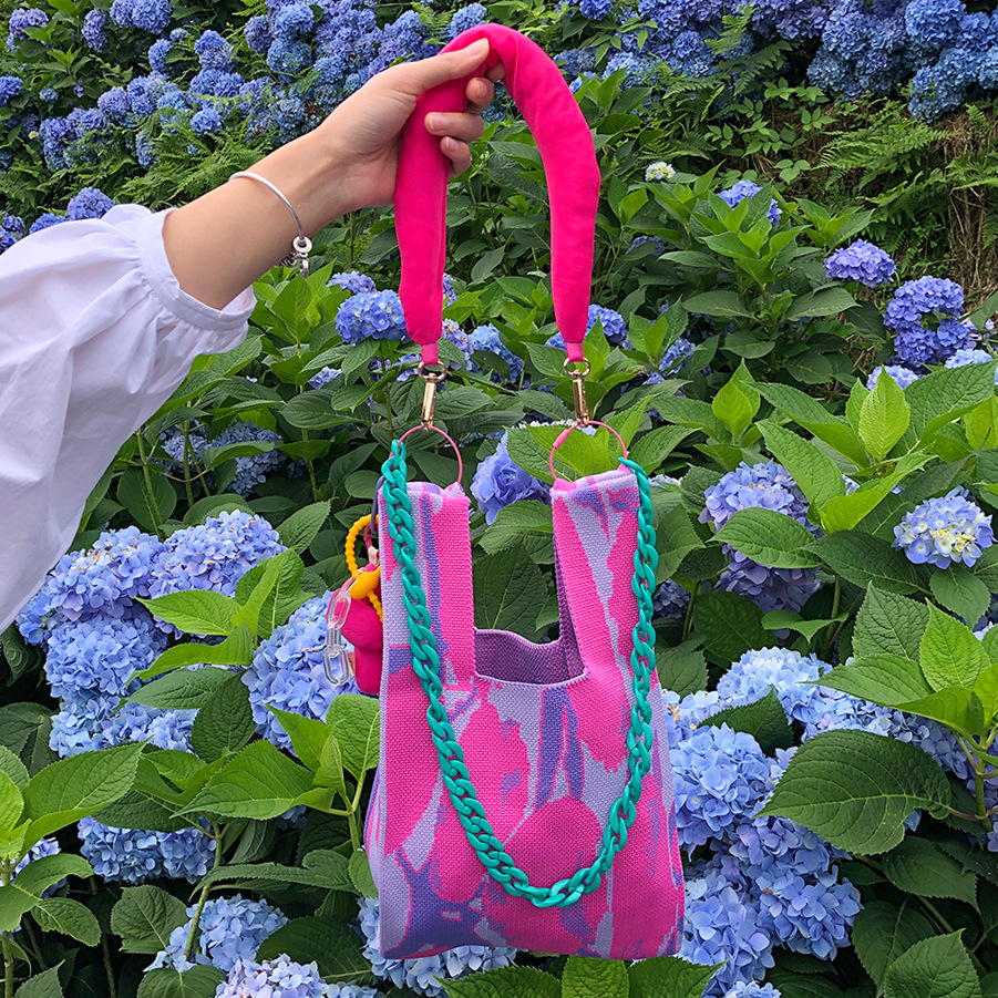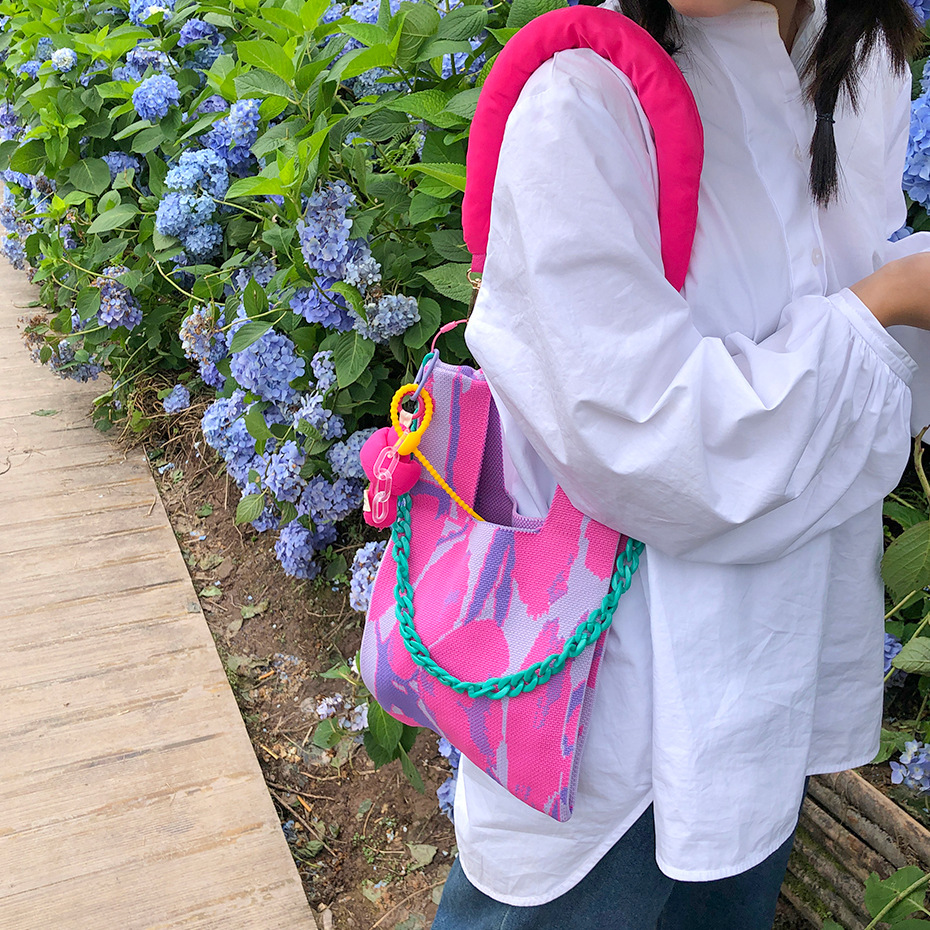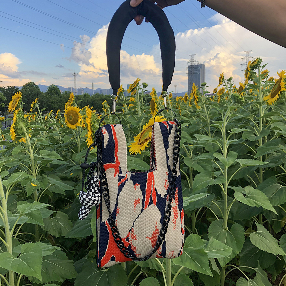 - ["Handmade Knitting Bag","Small Size","Chain Strap","Circle Handle","Pull Buckle Closure"]