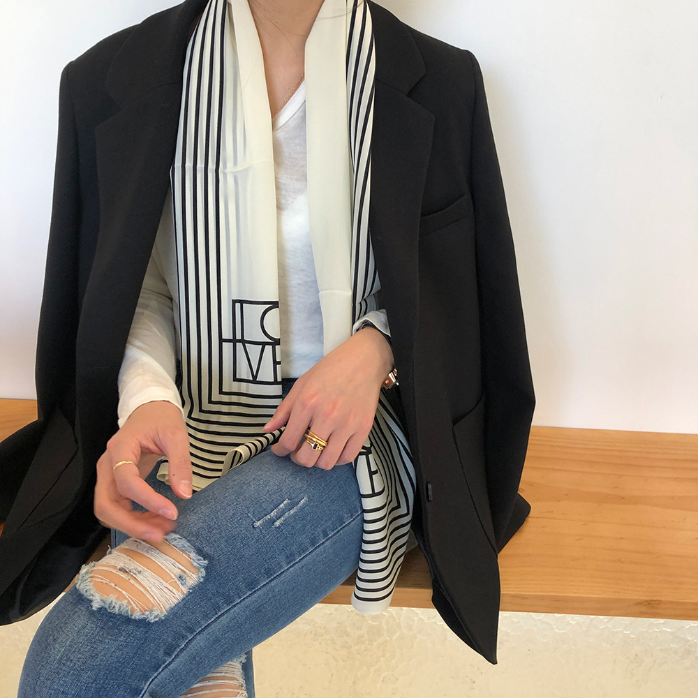 {"Size":"140x35cm","Style":"Minimalist","Origin":"Hangzhou","Function":"Sunshade","Fabric Name":"Silk","Length (CM)":"140X35CM-J101Y","Style Category":"Fashionable Commuting","Weaving Method":"Twill","Fashion Element":"Lines","Season Suitable":"Spring","Processing Technology":"Knitting","Main Fabric Composition":"Silk","Fashion Element Category":"Geometric","Main Fabric Composition Content":"100%"}