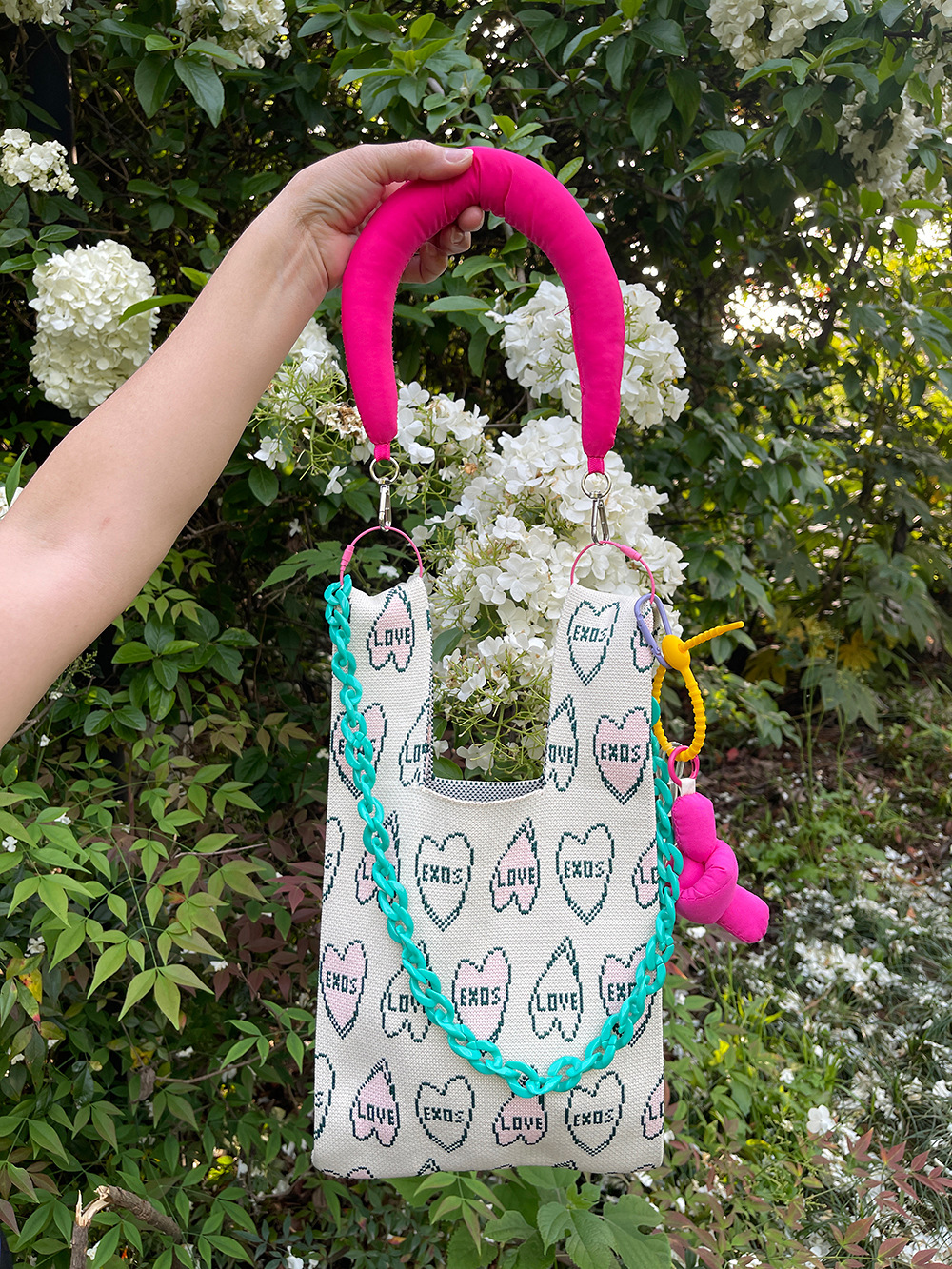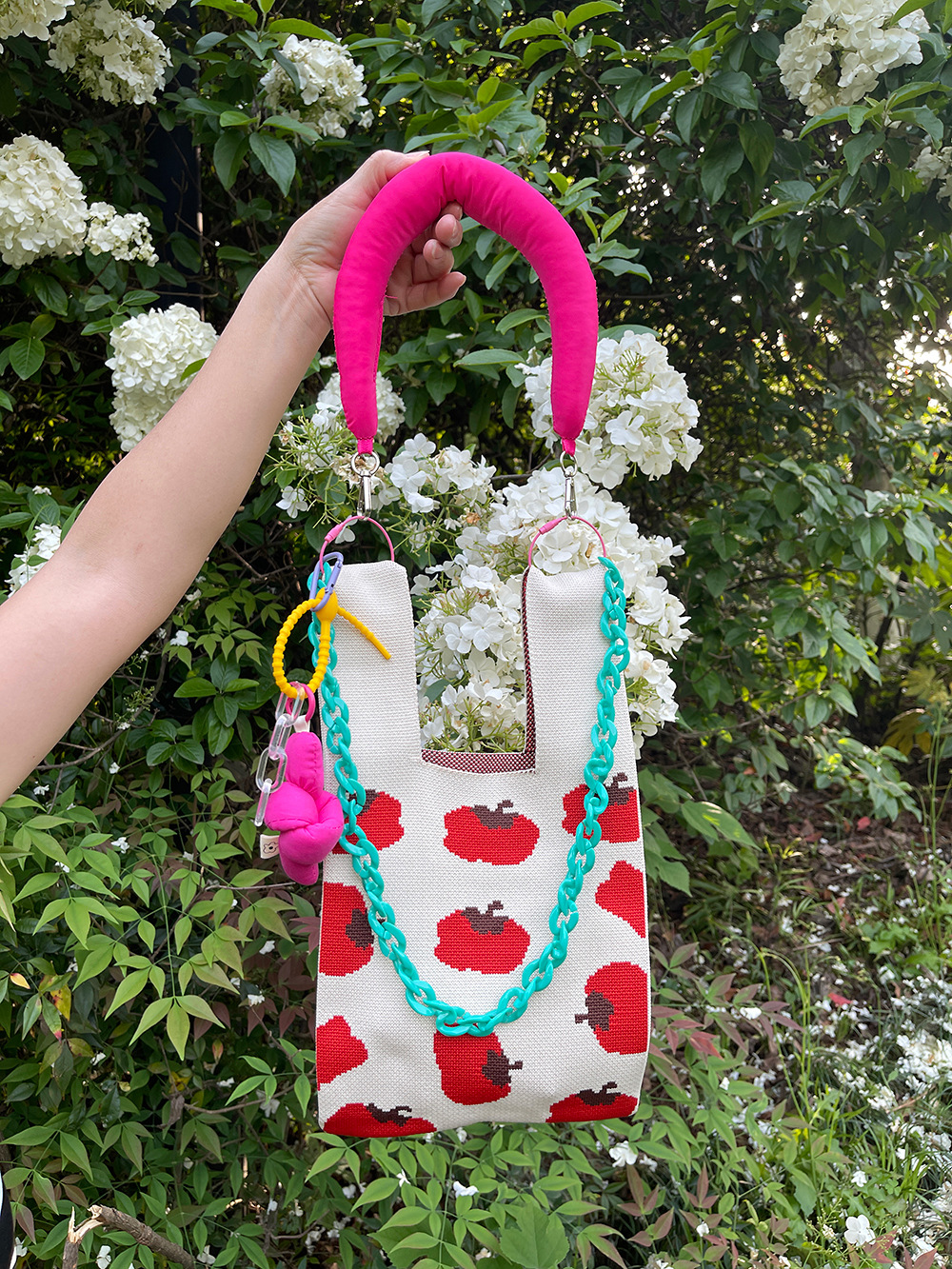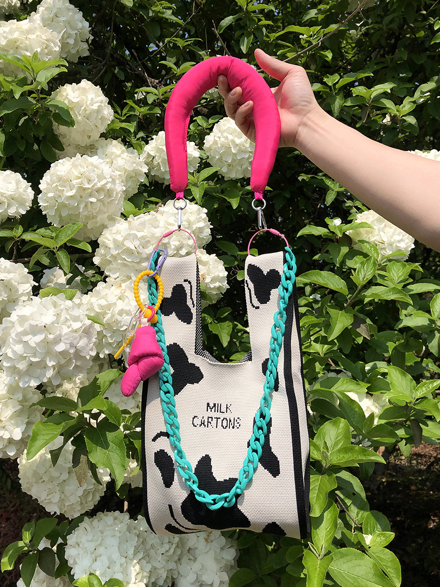 {"Size":"21x20x12cm","Style":"Cross-Border Trend","Layered":"No","Bag Size":"Small","Bag Type":"Open Top Bag","Hardness":"Moderately Soft","Material":"Polyester","Bag Shape":"Barrel-shaped","Fabric Quality":"Polyester","Opening Method":"Open Mouth","Bag Trend Style":"Barrel Bag","Fashion Element":"Knitting, Flowers, Love, Leopard Print, Chain, Macaron Color","Applicable Scene":"Daily Matching","Number of Straps":"Single","Season and Year of Release":"Summer 2023"}