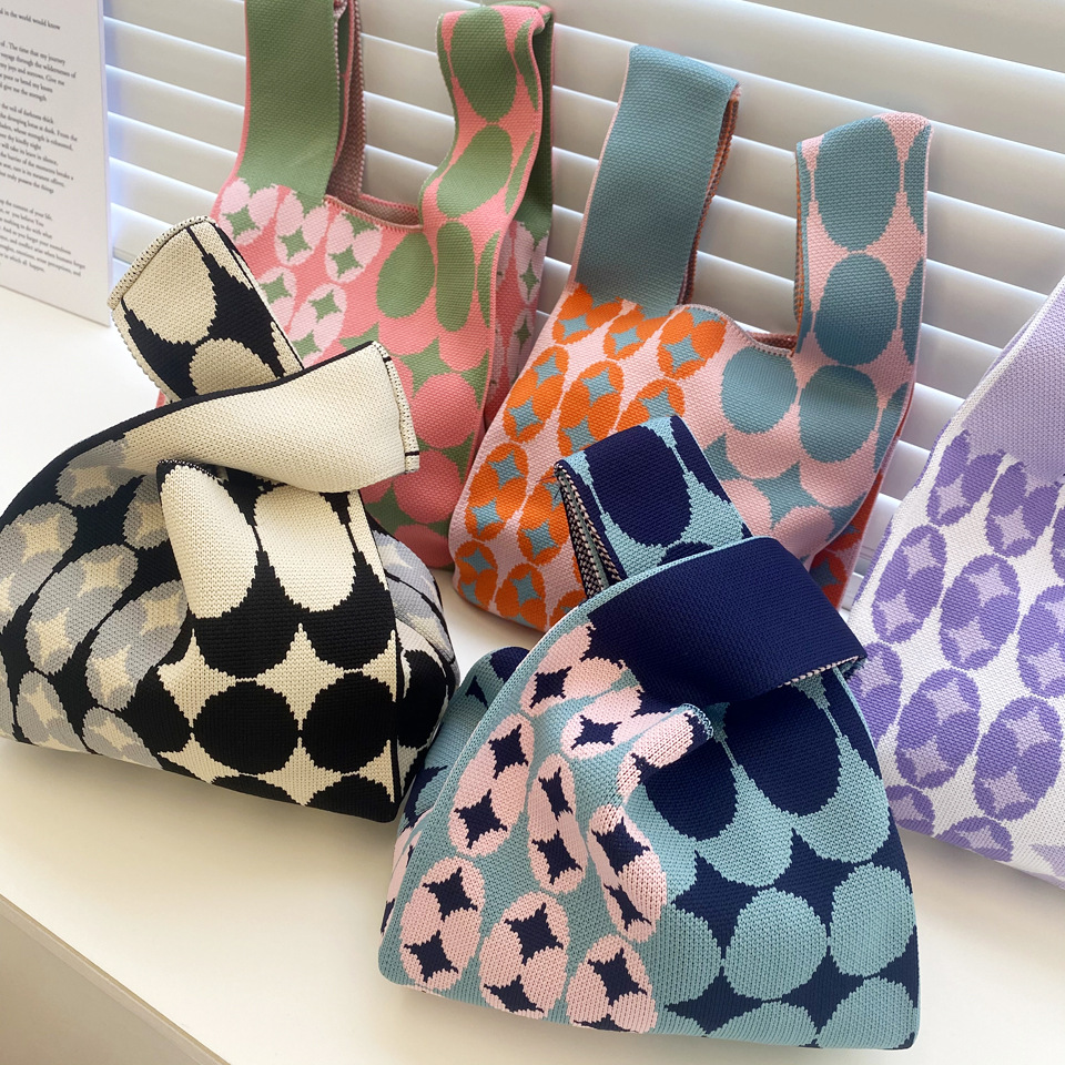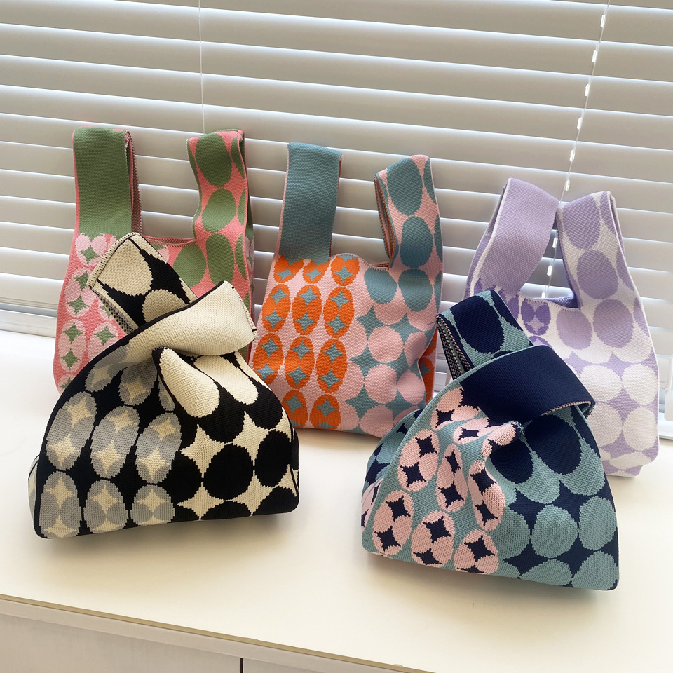 Street Style Wrist Bag - Soft Knit Material with Small Size and 148618719 Elements