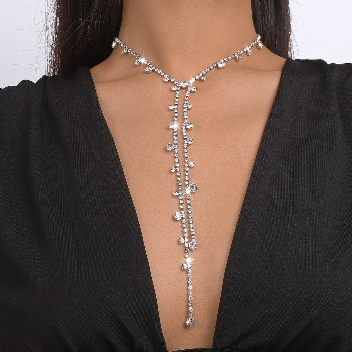 Sexy Long Water Diamond Tassel Necklace with Personalized Style for Women