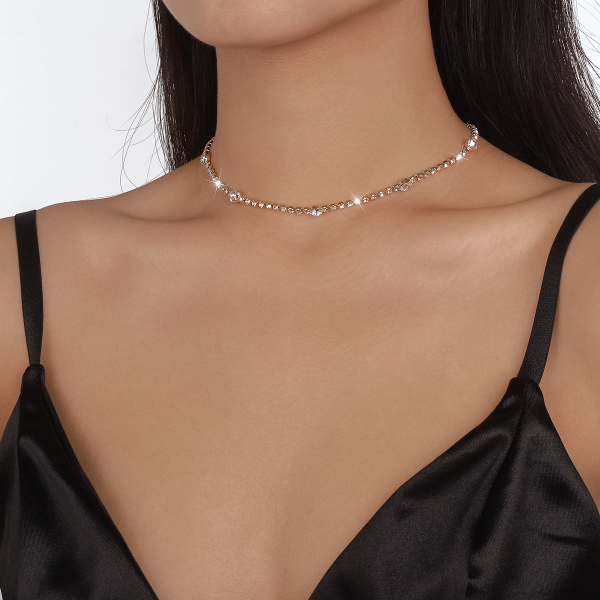 N10445 Women's European and American Style Choker Necklace with Water Diamonds