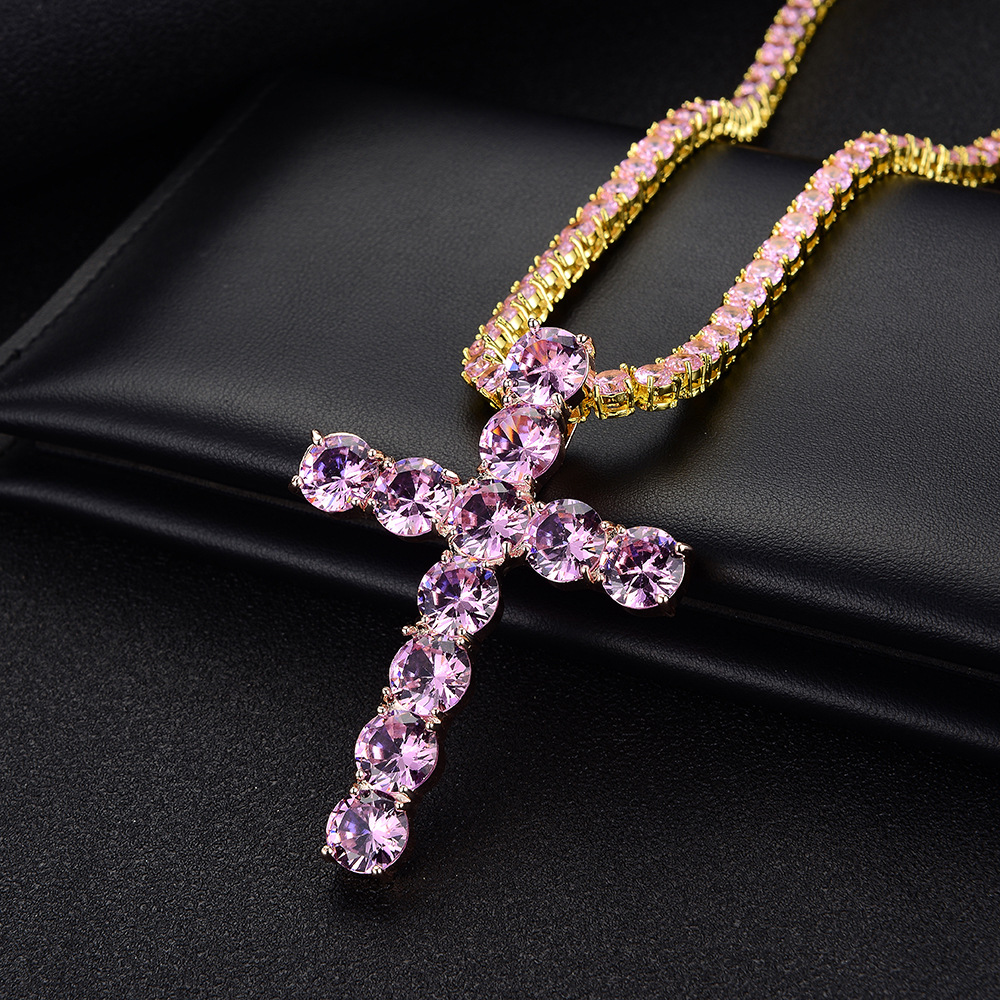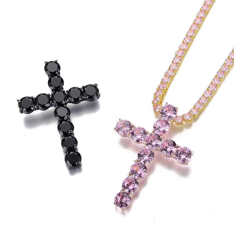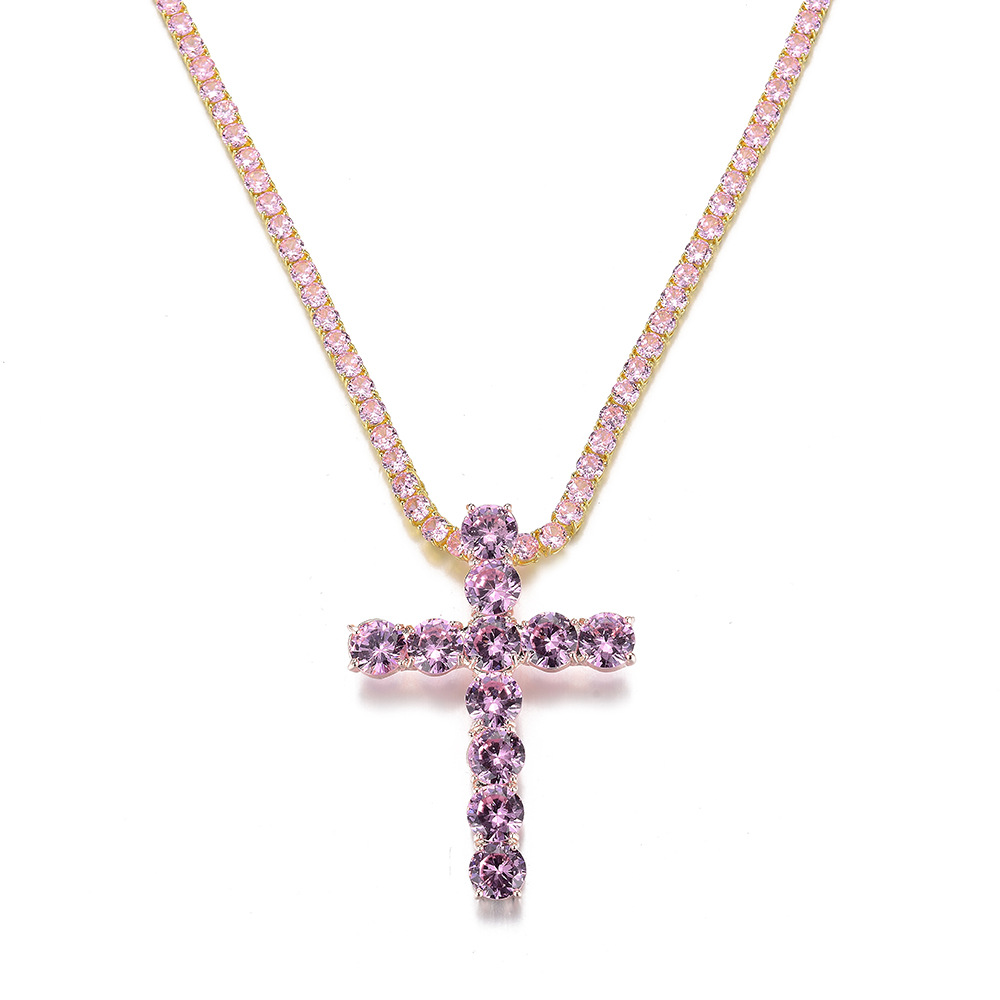 Fashionable Zircon Cross Pendant Necklace with Creative Colorful Gemstone and Super Flashy Zircon