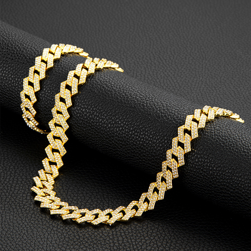 - ["Made from alloy material, durable and long lasting","Unique geometric pattern, stylish and fashionable","Unisex style, suitable for both men and women","Double row full diamond chain necklace, full of hip hop style","Old Bali chain, perfect for punk style"]