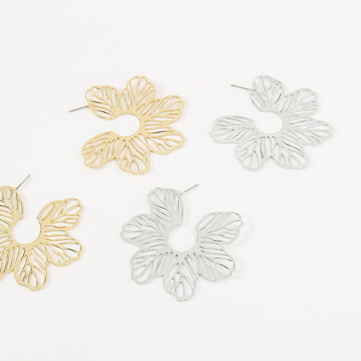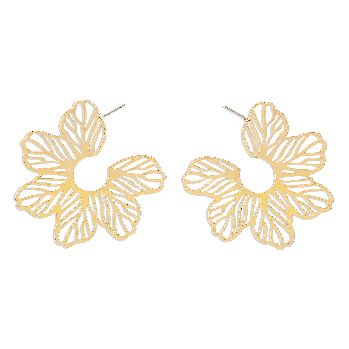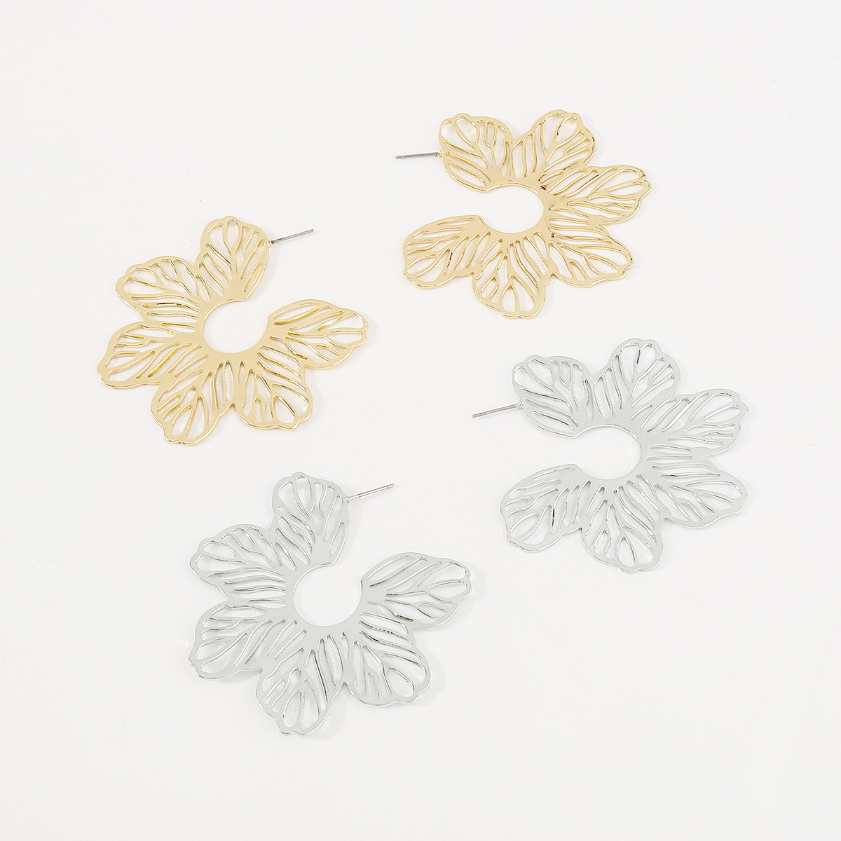 - ["Unique design with geometric shape","Hollow texture flower earrings","Made of iron material","Metal retro Hong Kong style","Suitable for female"]