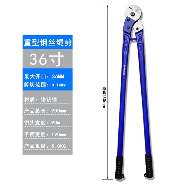 {"Size":"8 inches","Model":"R4031/8 inch, R4030/8 inch, 18 inch steel wire rope cutter, 24 inch steel wire rope cutter, 36 inch steel wire rope cutter, 42 inch steel wire rope cutter","Shape":"Flat Mouth","Weight":"300","Feature":"Normal","Standard":"Chinese","Cutting Diameter":"0-3.2"}