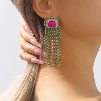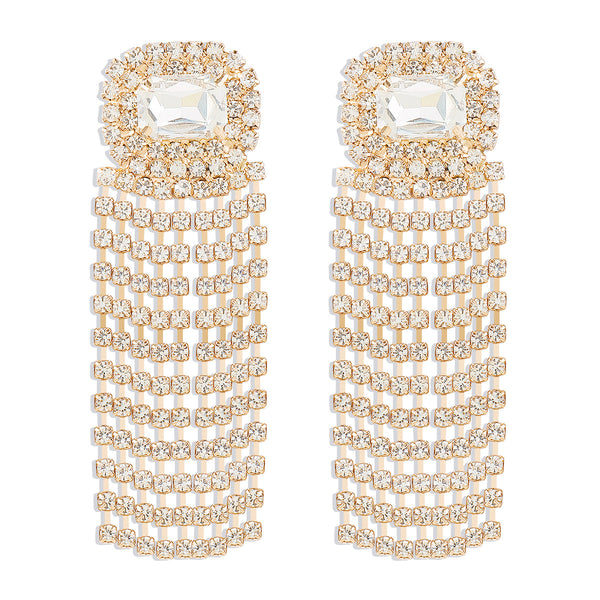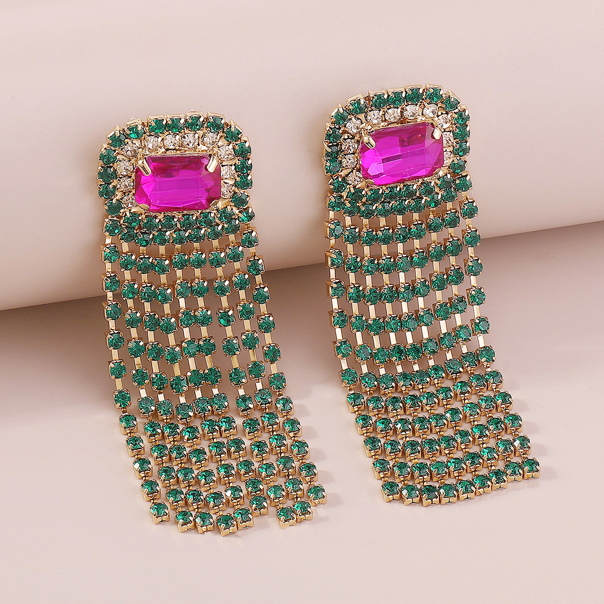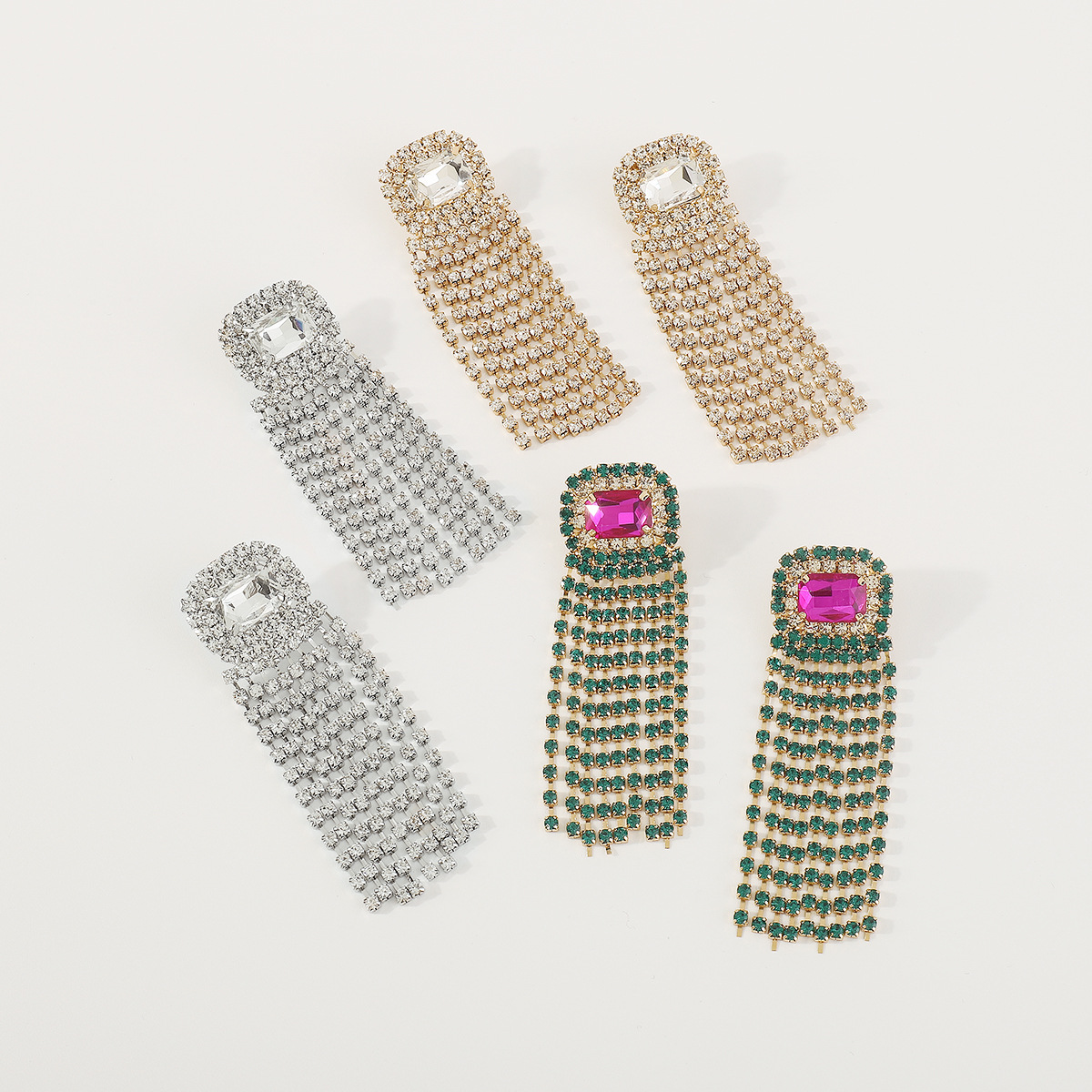 E11330 Exaggerated Luxury Long Earrings with Diamonds and Tassels for Women