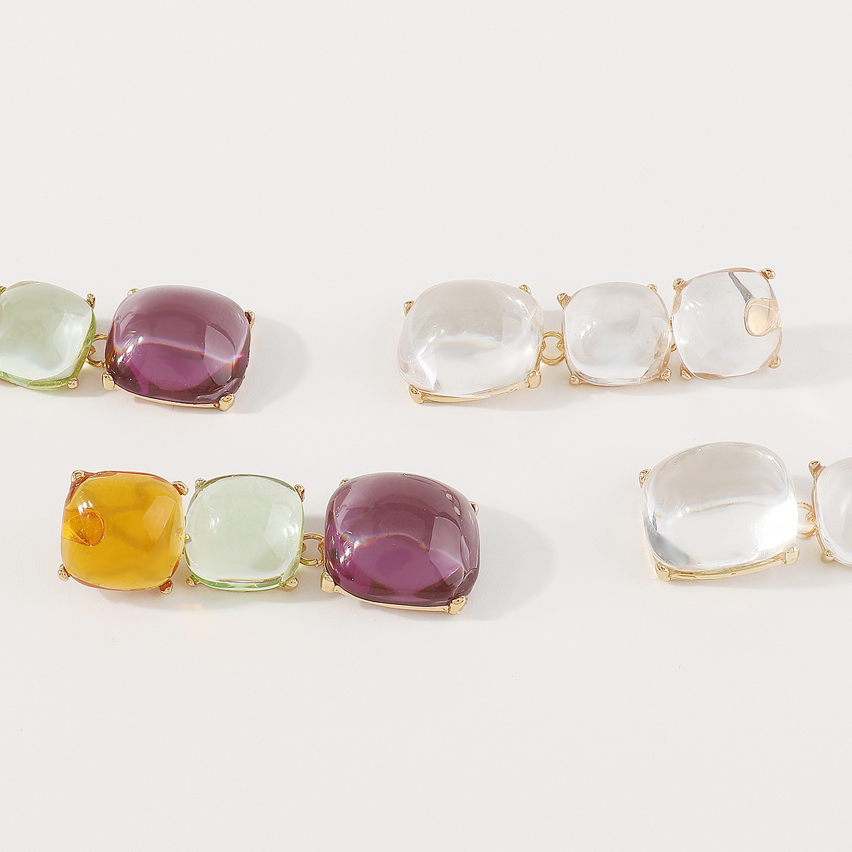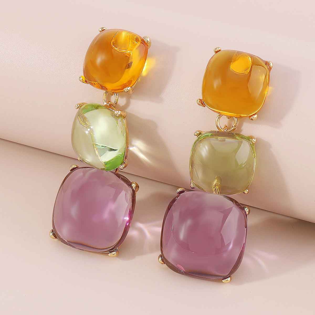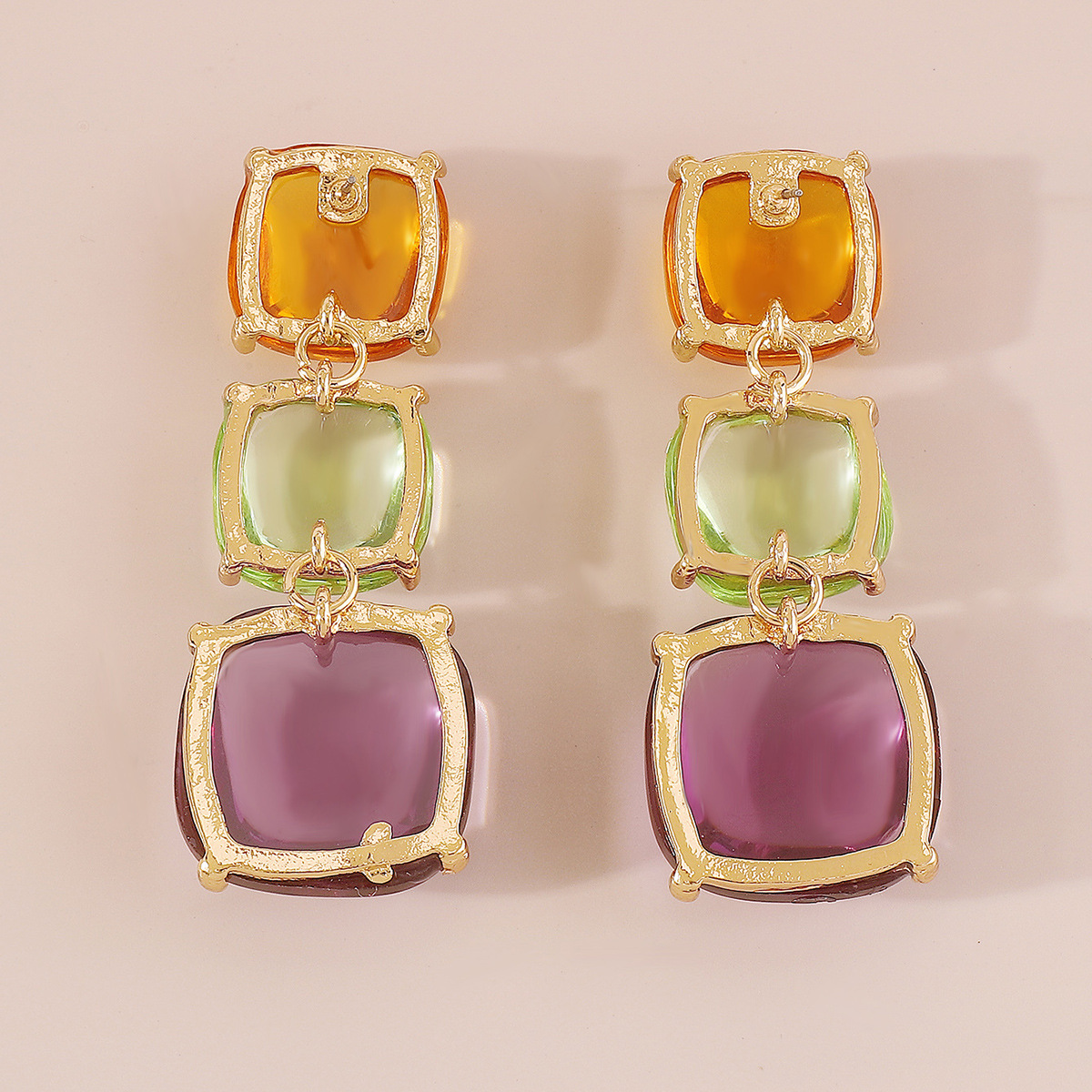 Sweet ZA Geometric Earrings with Colorful Gems for Women