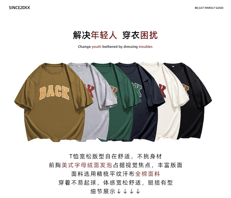 {"Cut":"Loose","Style":"Crew Neck","Hooded":"No","Weight":"200g","Pattern":"Alphabet","Category":"T-Shirt Vest","Thickness":"Regular","Style Type":"Creative Style","Collar Type":"Round Collar","Error Range":"1-3cm","Fabric Name":"100% Cotton","Print Theme":"None","Sleeve Type":"Regular","Source Type":"Direct from Manufacturer","Suitable for":"Young people","Craftsmanship":"Printing/Dyeing","Sleeve Length":"Short Sleeve","Style Details":"None","Suitable Season":"Summer, Spring","New Arrival Type":"New Item","Product Category":"Youth Fashion (18-24 years old)","Application Scene":"Leisure","Material Function":"Other","Main Fabric Content":"100","Original Design Source":"Yes","Main Fabric Composition":"Cotton","Quality Inspection Report":"Yes"}