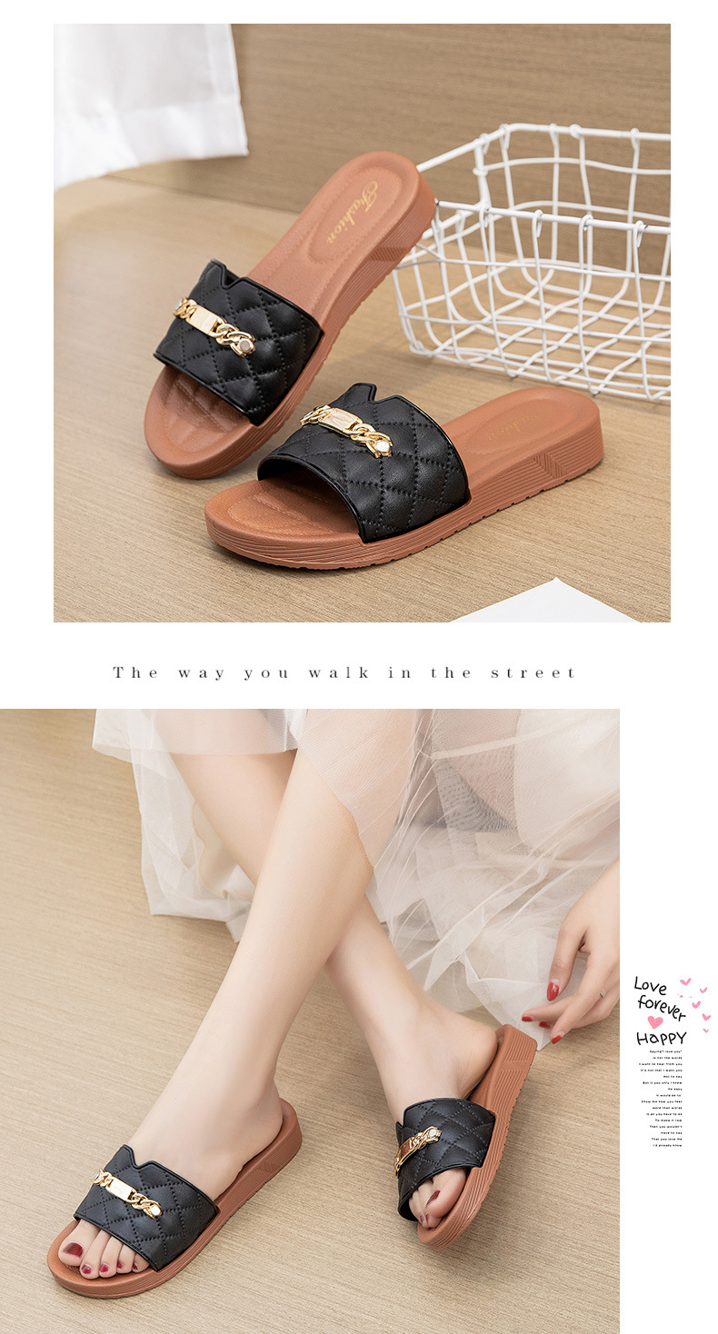 New Women's Summer Korean Style Thickened PVC Slippers Casual Flat Anti-Skid Beach Shoes