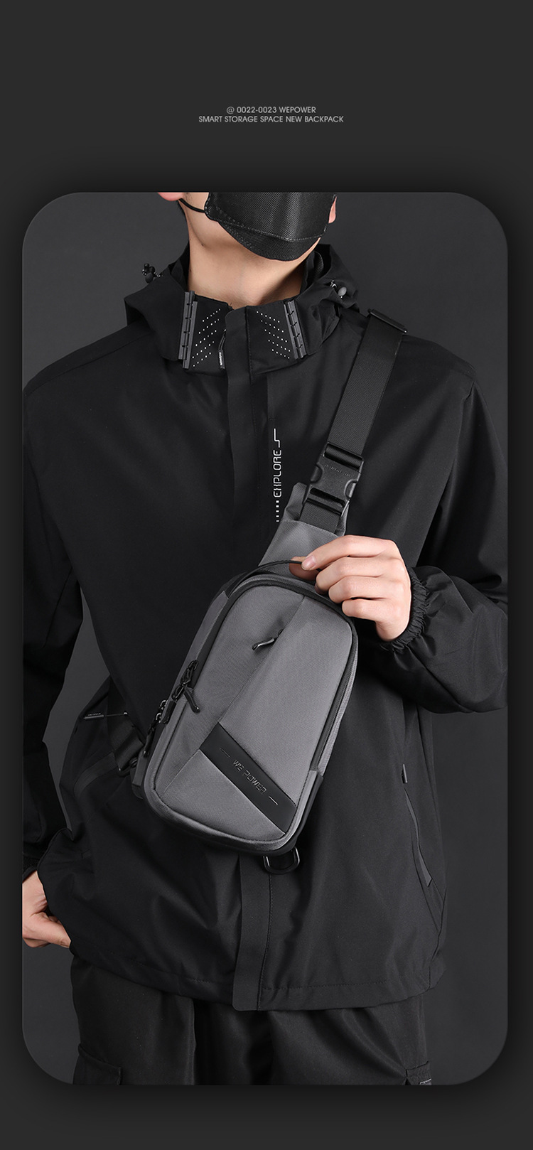 Men's WEPOWER Oxford Bag, Cross-border Windproof Waterproof, Pull-up Zipper, Small Size, Flat Shape, Soft Surface, 2113 Model, Medium Hardness, Letter Pattern, Soft Handle, Single Handle, Solid Body Bag, Suitable for Everyday Wear