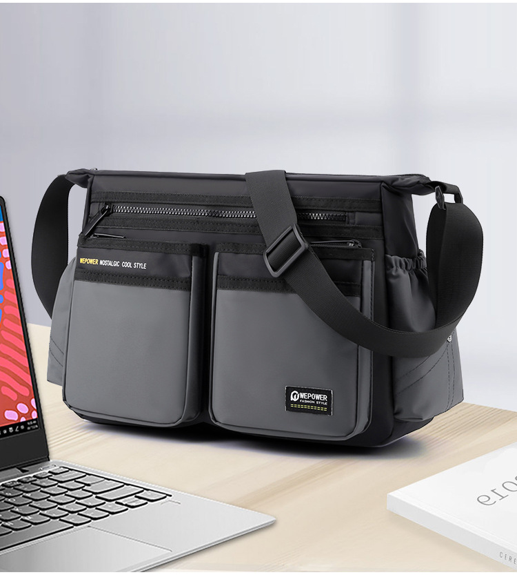Men's Outdoor Sports Crossbody Bag with Oxford Fabric, Pull String Closure, Medium Size