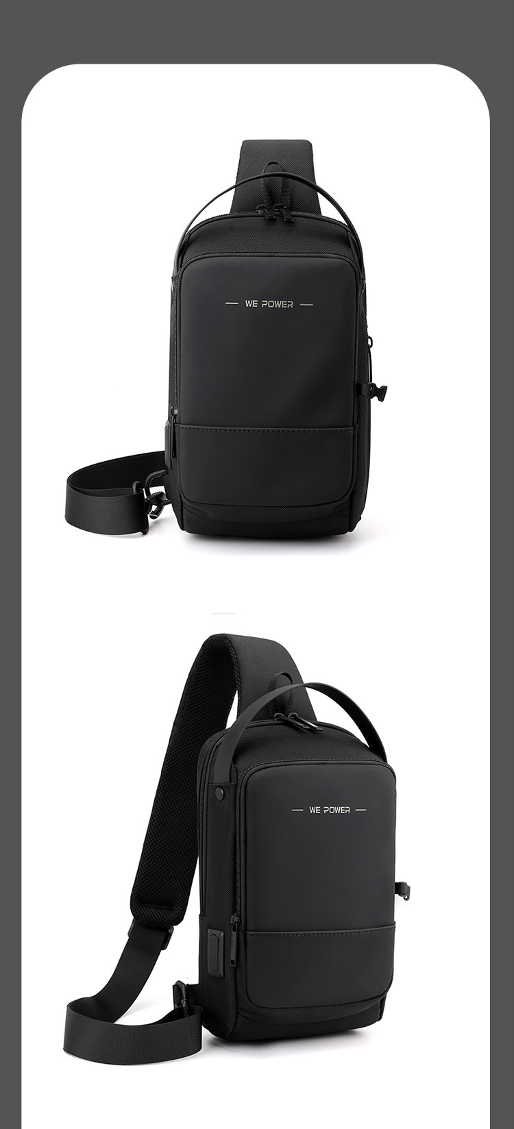 New Wepower Function Men Bag - Waterproof Cross-body Bag with Zipper Closure, Medium Size, Square Shape