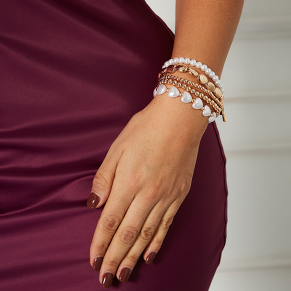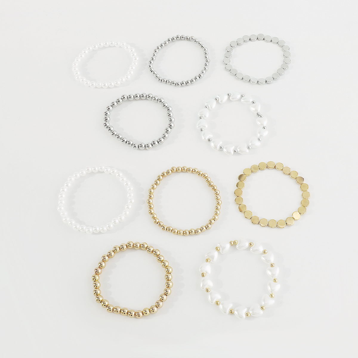 Fashionable CCB Pearl Bracelet Set with Handcrafted Artwork and Multiple Layered Accessories