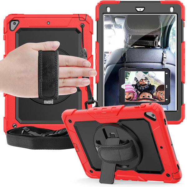 - ["Rotatable Stand for flexible use","Shockproof and Heat Dissipation","Anti-Drop Protection","Specially designed for Apple iPad 9.7 (2018)","Made of high-quality silicone"]