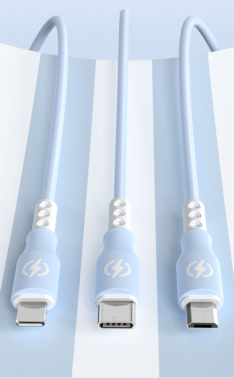 6A Super Fast Charging Cable with Lightning, Micro USB, TYPE-C Connectors, 1.2m Length, Silicone Material