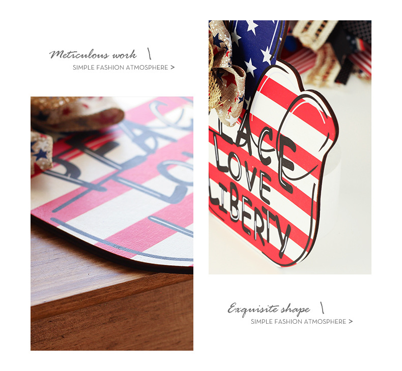 - ["Made of high quality wood material","Unique design with American flag pattern","Perfect for home and hotel decoration","Lightweight and easy to hang","Great for Independence Day celebration"]