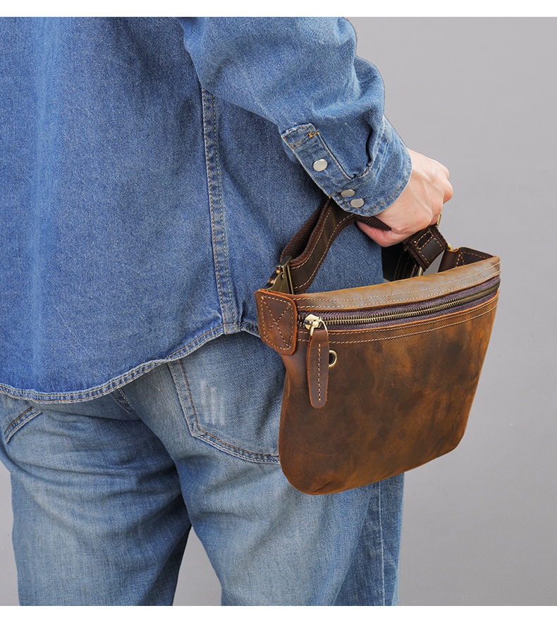 European Retro Multi-Functional Leather Shoulder Bag for Men with Earphone Hole Chest Bag