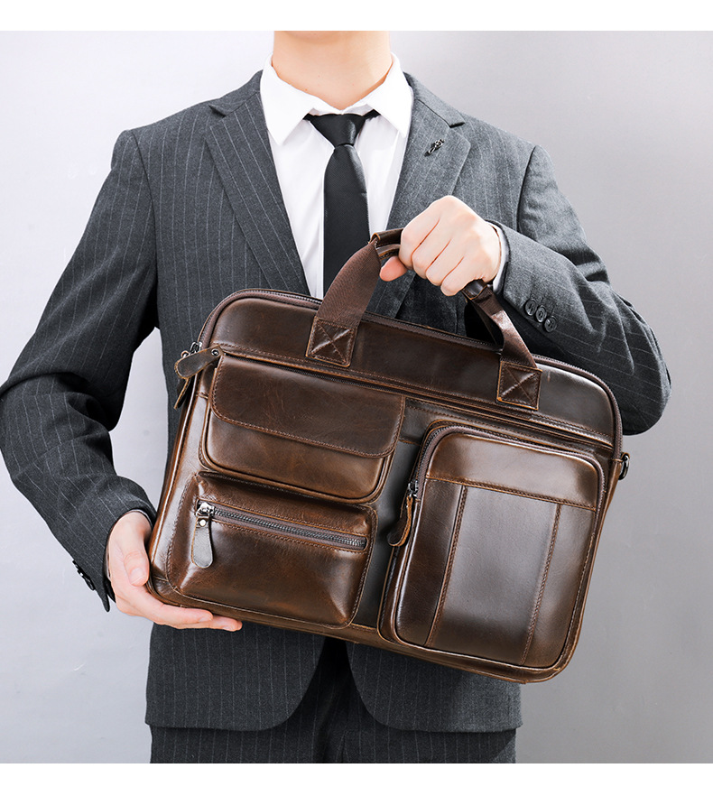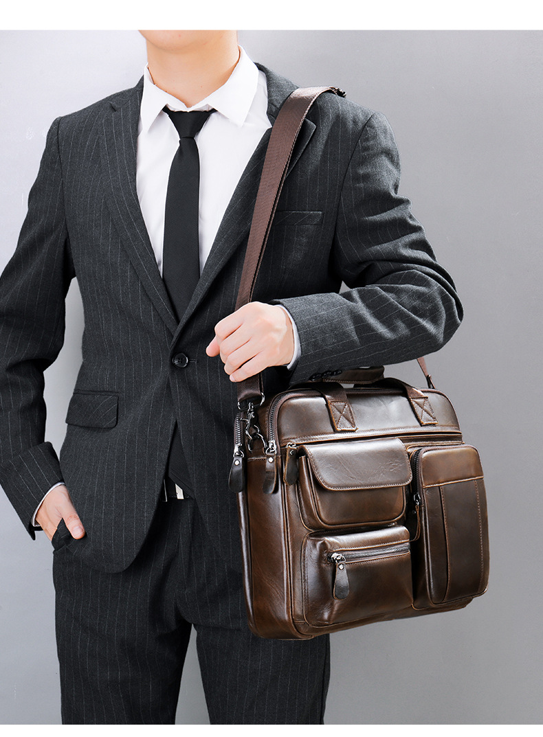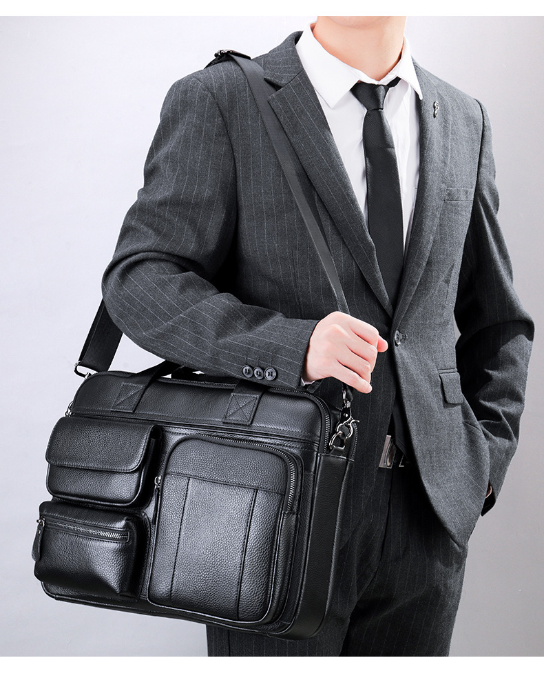 {"Model":"5029","Style":"Shoulder Bag","Origin":"Guangzhou","Pattern":"Solid Color","Bag Type":"3D Bag","Function":"Waterproof, Multifunctional, Computer Warehouse","Hardness":"Soft","Material":"Genuine Leather","Bag Shape":"Horizontal Square","Fabric Quality":"Polyester Cotton","Opening Method":"Zipper","Carrying Handle":"Soft Handle","Fashion Element":"Stitching","Laminated Layer":"Yes","Number of Straps":"Single","Application Scene":"Business Travel","Processing Method":"Soft Surface","Internal Structure":"Zipper Pocket, Phone Pocket, ID Pocket, Layered Zipper Pocket, Computer Insert Pocket","Gender Applicability":"Male","Latest Delivery Time":"3","Computer Size Capacity":"14","Leather Characteristics":"Top-Grain Cowhide","Season and Year of Release":"Autumn 2022"}