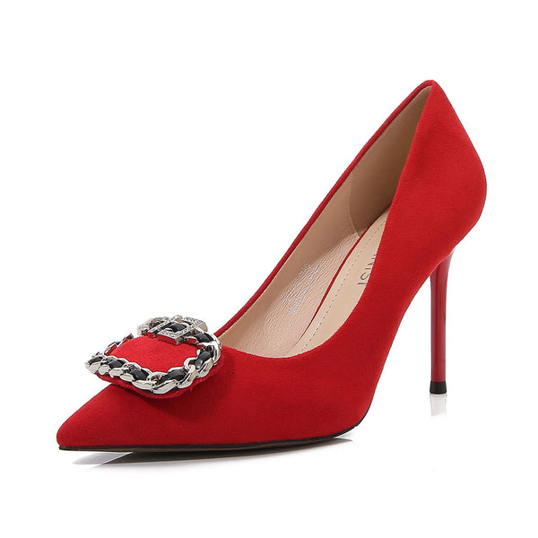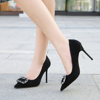 - ["Made of high quality PU material","French style design, perfect for the office look","High heel and superfine heel design","Net surface and PU sole","Suitable for all seasons"]