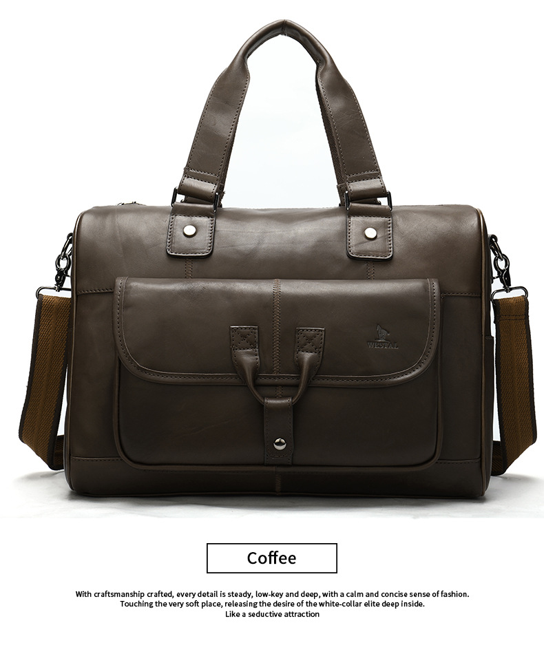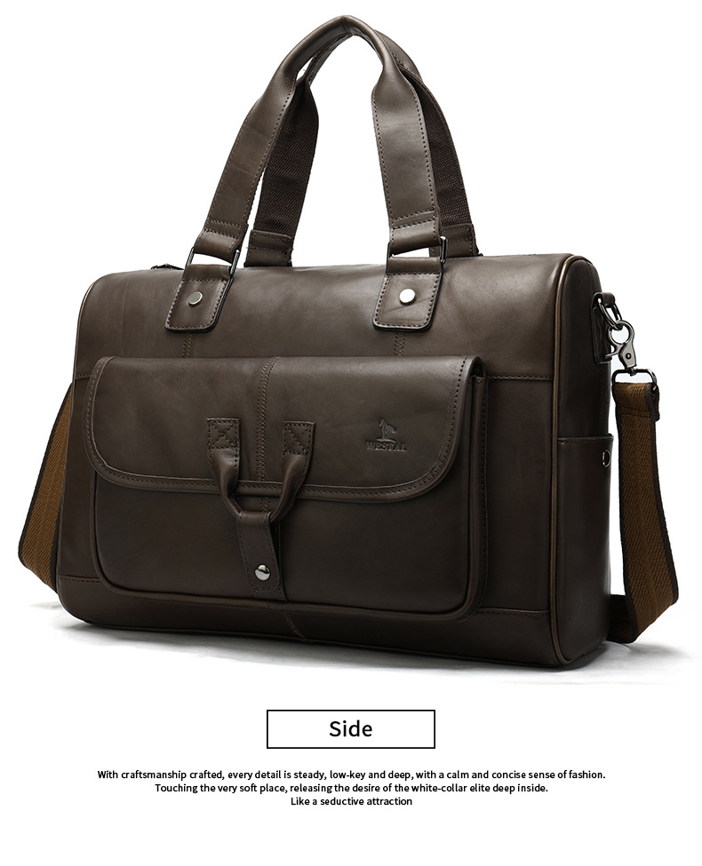 Men's Business Travel Laptop Bag Genuine Leather Shoulder Bag