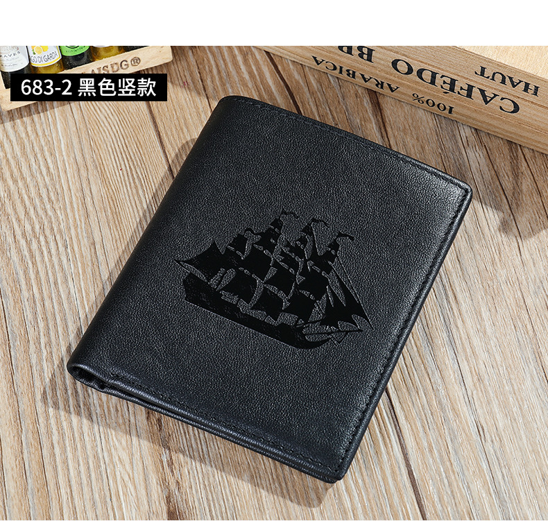 Men's Genuine Leather Wallet with Anti-theft Function, Head Layer Cowhide, 1 Compartment, Zipper Opening, Flat Shape, Business Style, Car Line Embroidery, Soft Texture, Real Leather