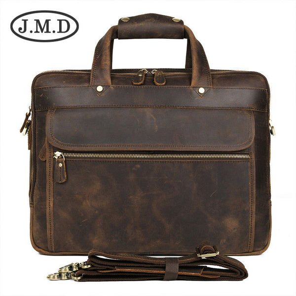 Business Genuine Leather Bag with Cowhide Head Layer, Classic Style, Single Handle, Nail Drill, Suitable for Men