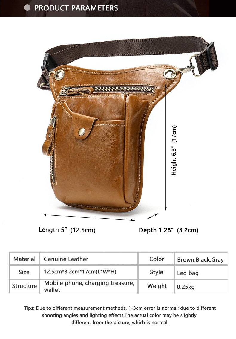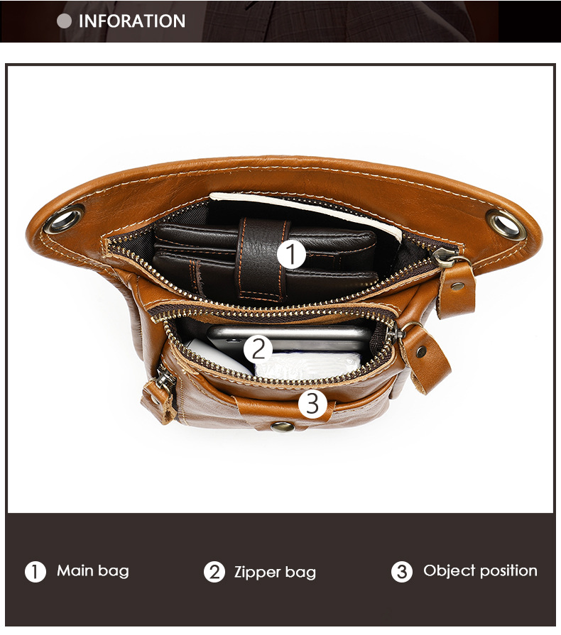 {"Model":"Men's Waist and Leg Bag","Style":"Business Casual","Origin":"Guangzhou","Pattern":"Solid Color","Bag Size":"Small","Bag Type":"Inner Bag","Function":"Wear-resistant","Hardness":"Soft","Material":"Genuine Leather","Bag Shape":"Shell-Shaped","Fabric Quality":"Polyester","Opening Method":"Zipper","Carrying Handle":"Soft Handle","Fashion Element":"Stitching","Applicable Scene":"Daily Matching","Processing Method":"Soft Surface","Internal Structure":"Zipper Pocket, Phone Pocket","Latest Delivery Time":"3","Market Year & Season":"2022 Winter","Leather Characteristics":"Top-Grain Cowhide","Number of Shoulder Straps":"Double"}