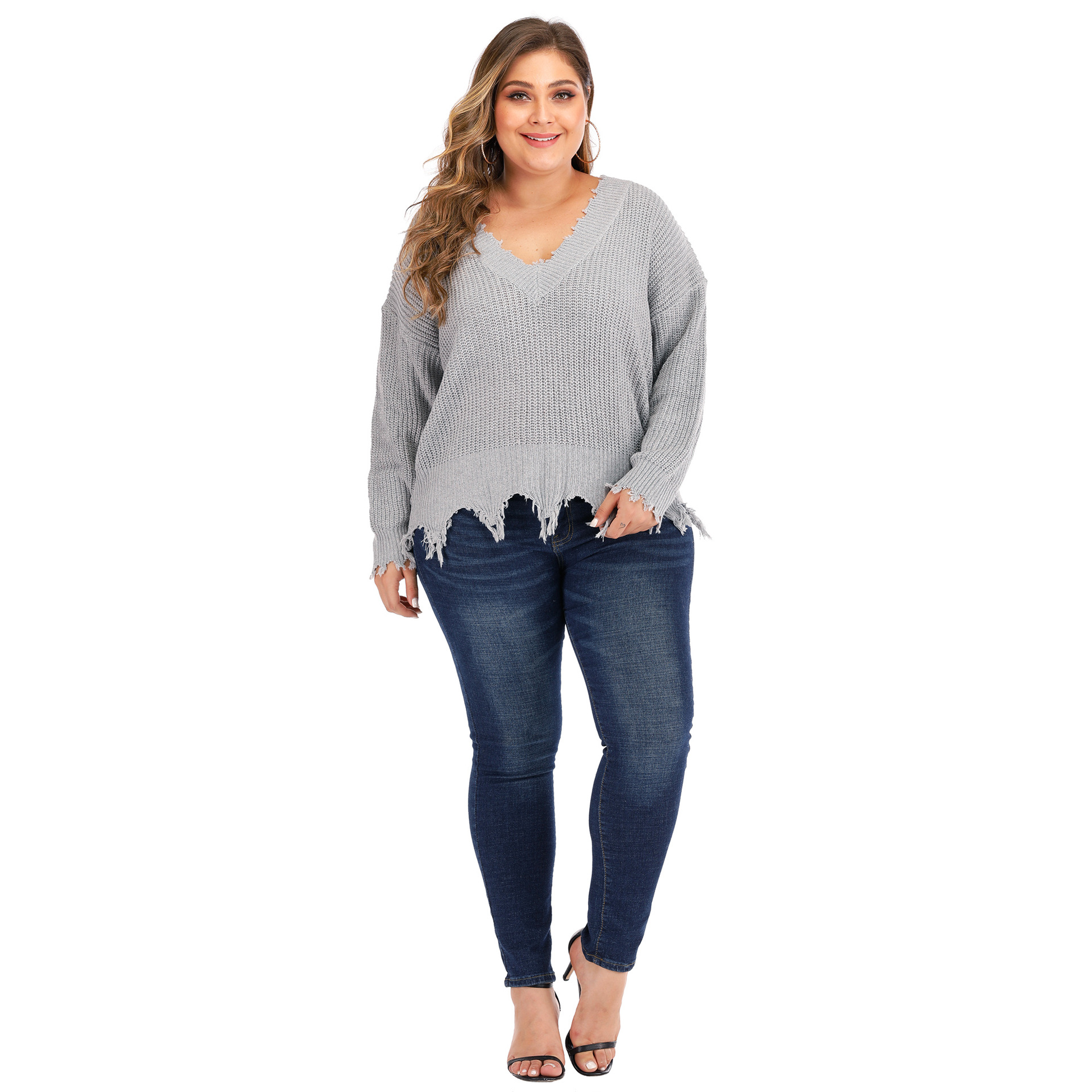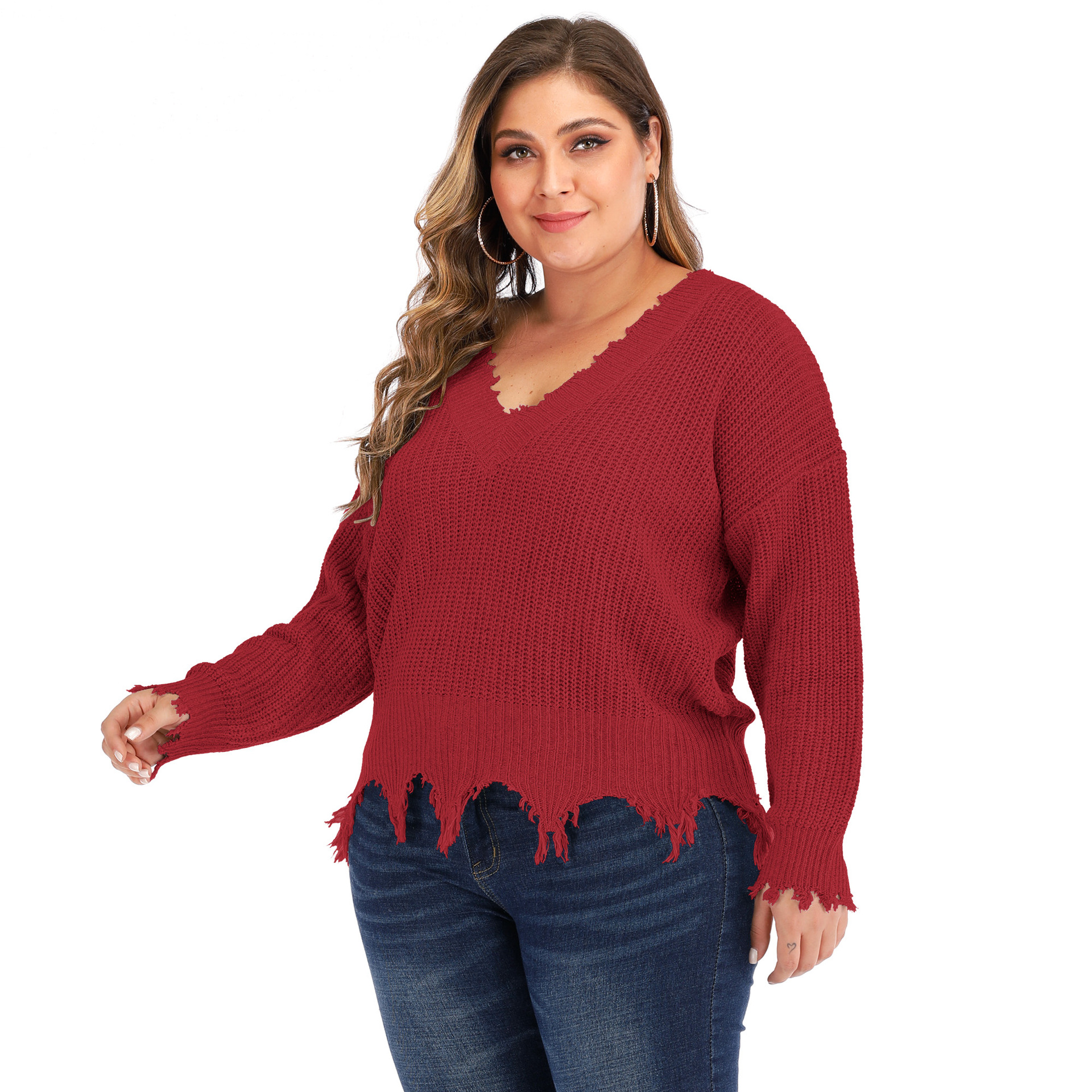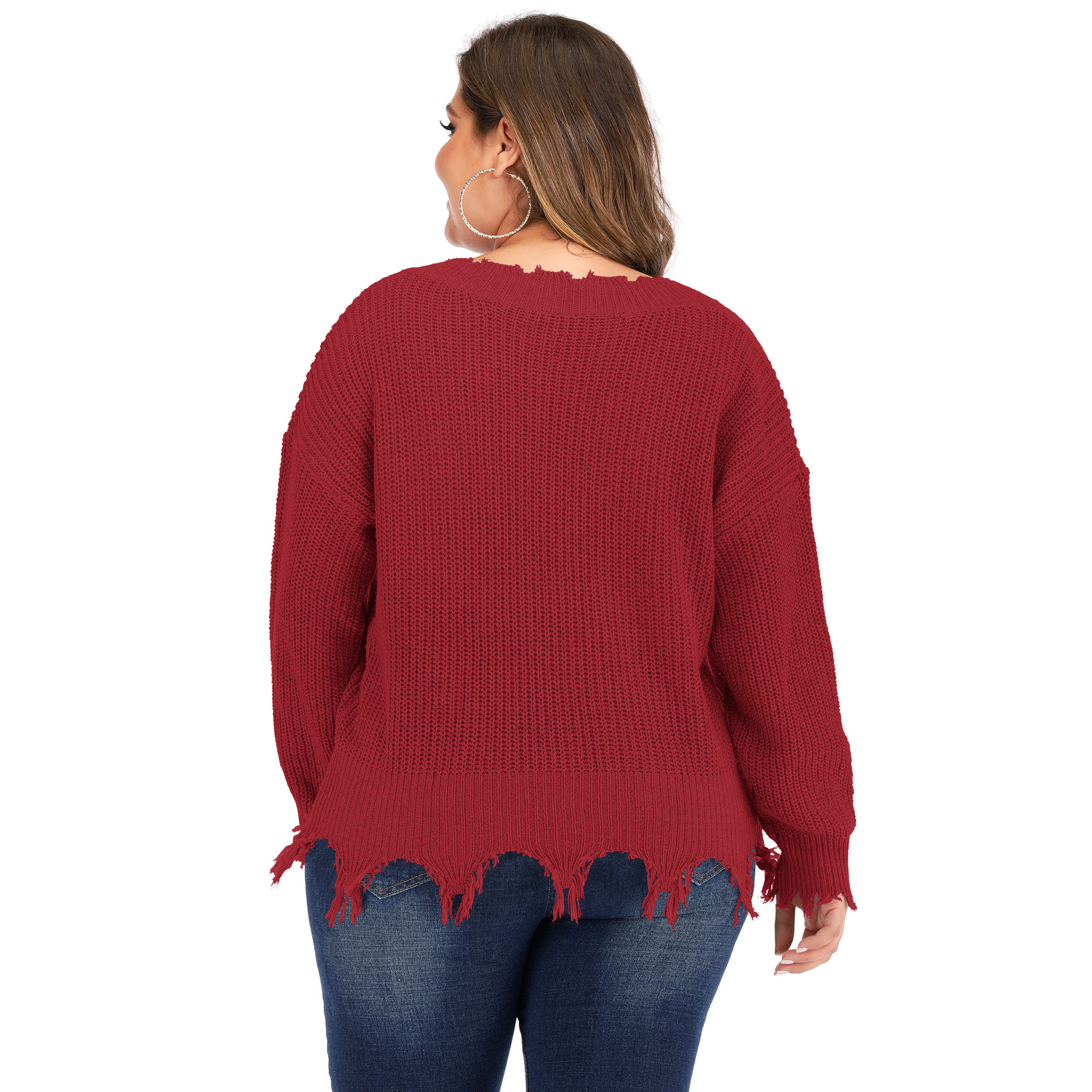 Ladies' Long Sleeve V-Neck Sweater with Plaid Detail and Thick Knit Material