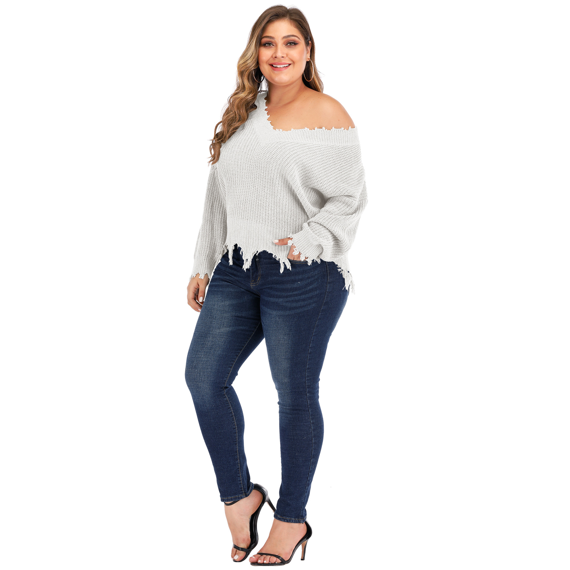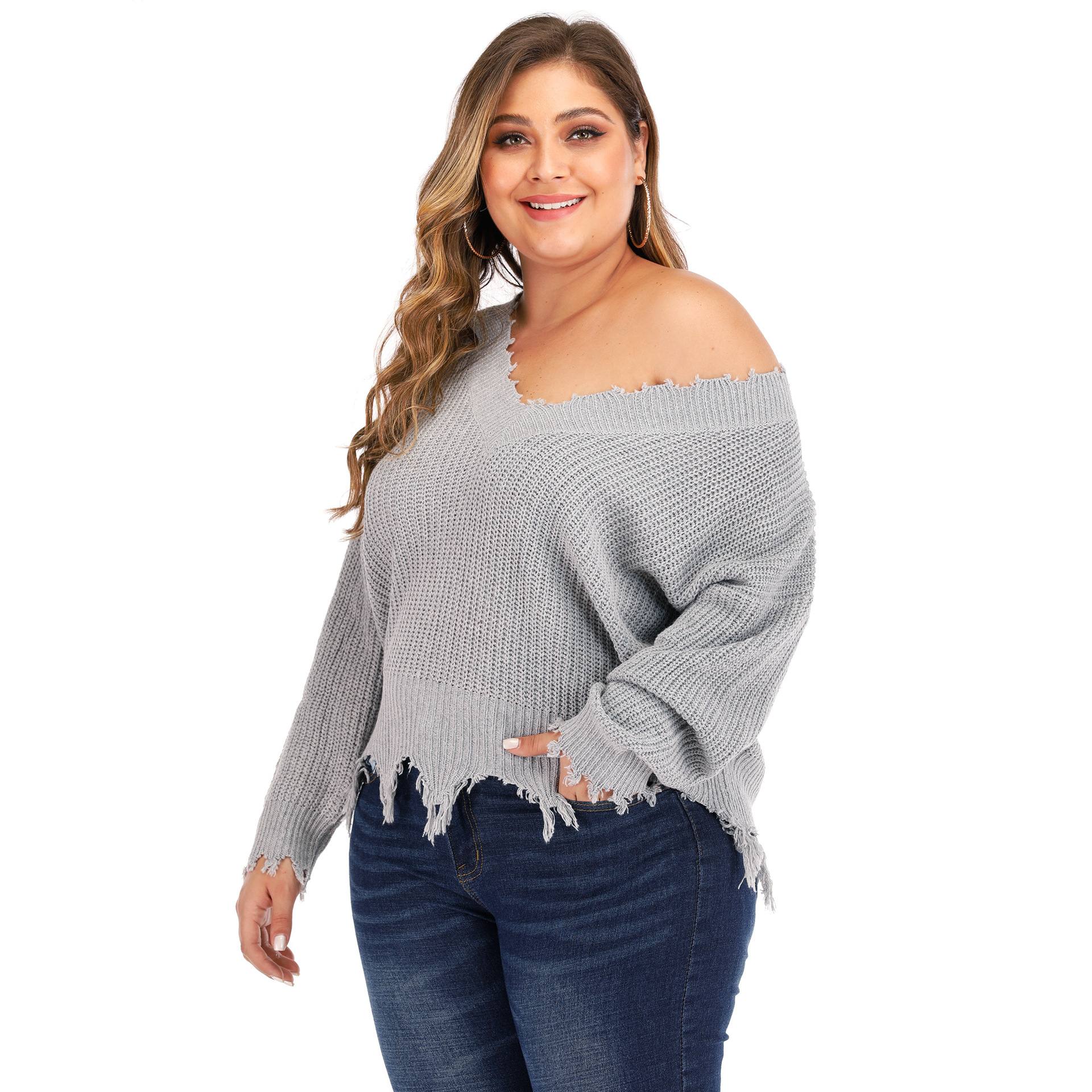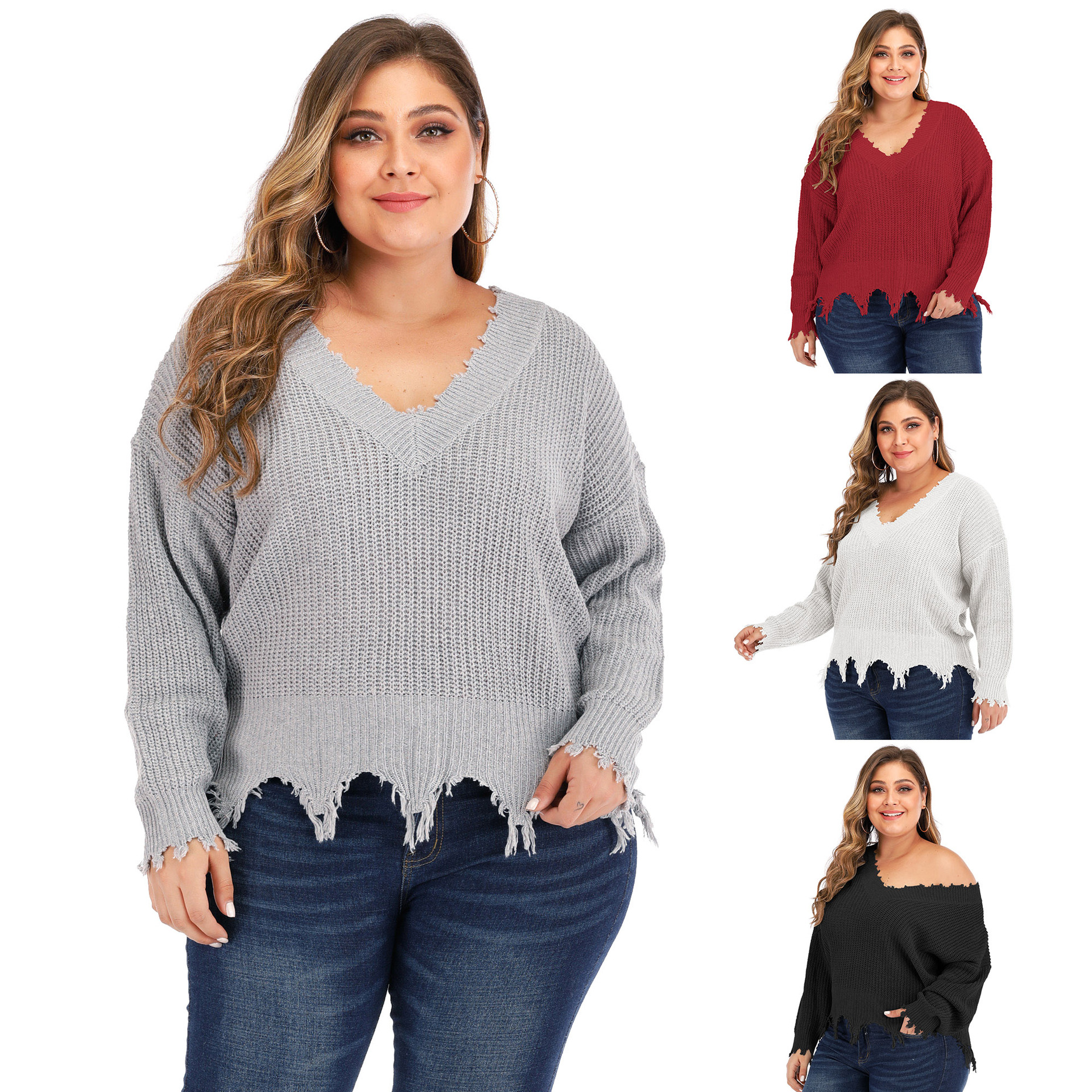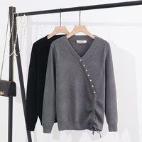 Ladies' Long Sleeve V-Neck Sweater with Plaid Detail and Thick Knit Material