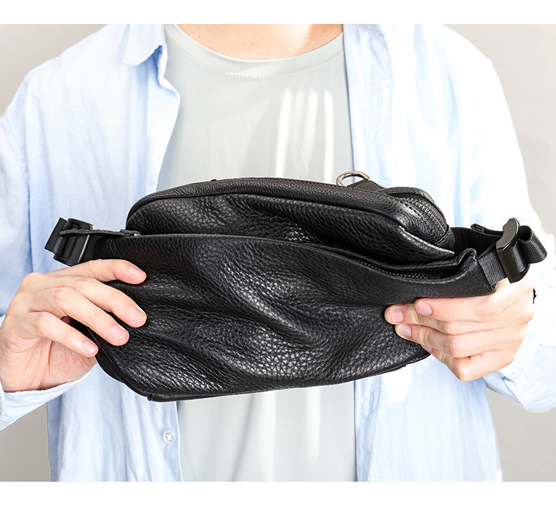 {"Model":"Men's Chest Bag","Style":"Streetwear","Pattern":"Solid Color","Function":"Wear-resistant","Material":"Genuine Leather","Fabric Quality":"Polyester","Fashion Element":"Stitching","Laminated Layer":"Yes","Application Scene":"Business Travel","Latest Delivery Time":"3","Market Year & Season":"Autumn 2023","Computer Size Capacity":"8 inches","Leather Characteristics":"Top-Grain Cowhide"}