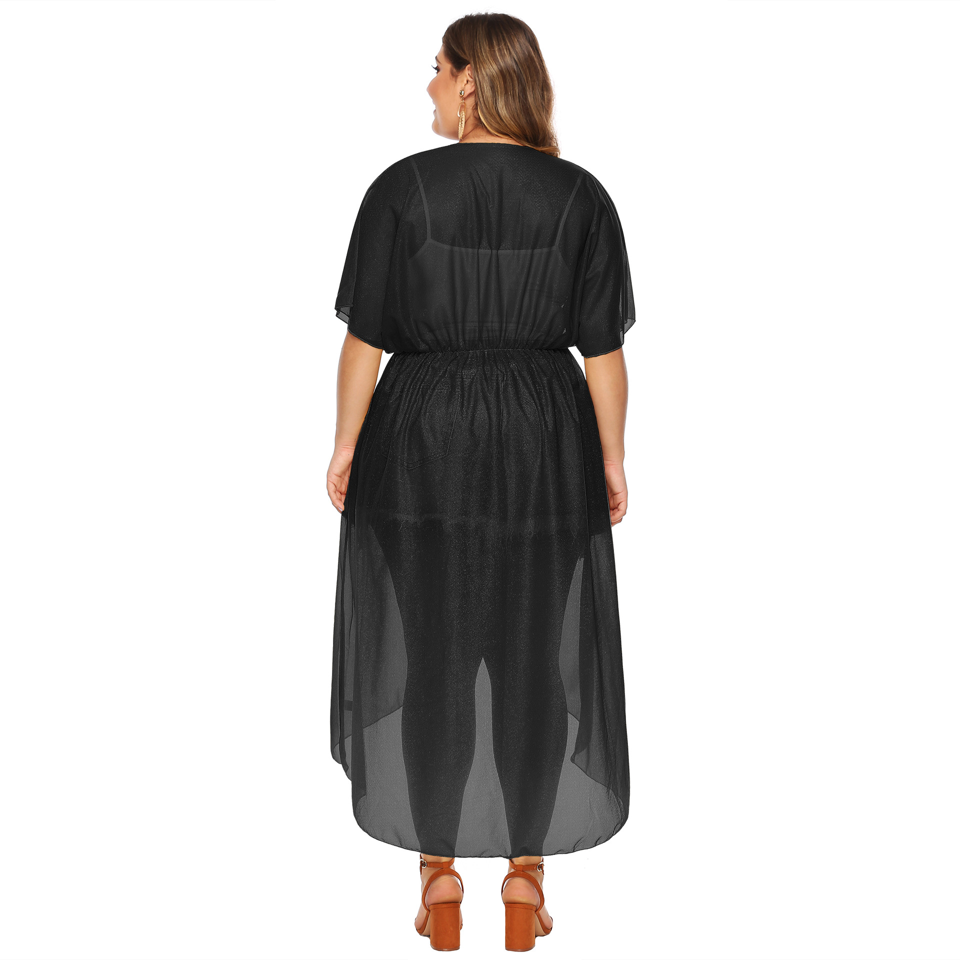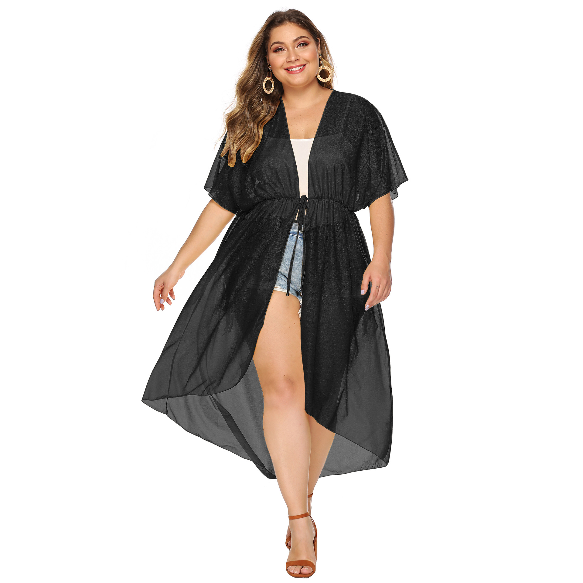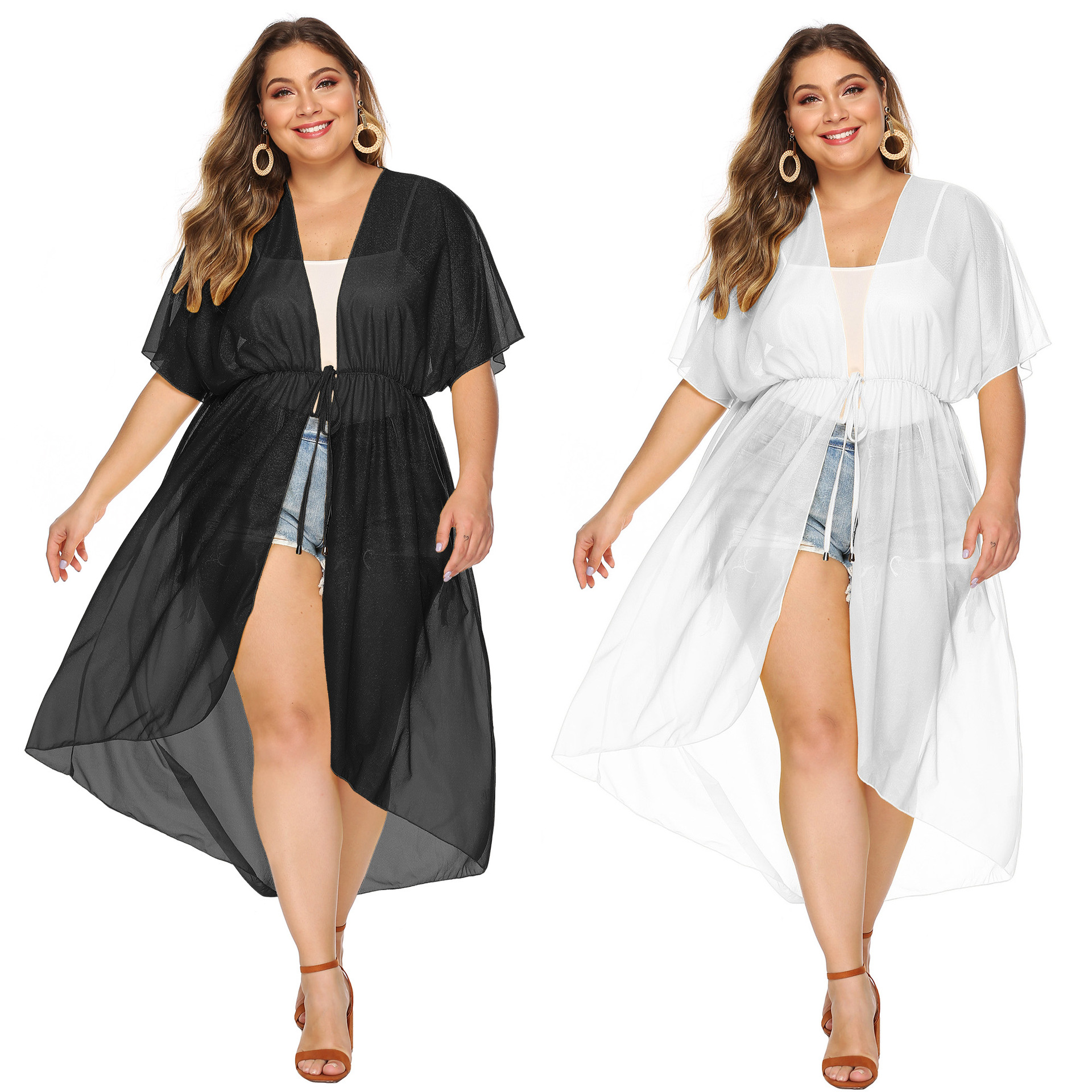 Ladies Plus Size Snowflake Belt Waist Loose Irregular Kimono 1054