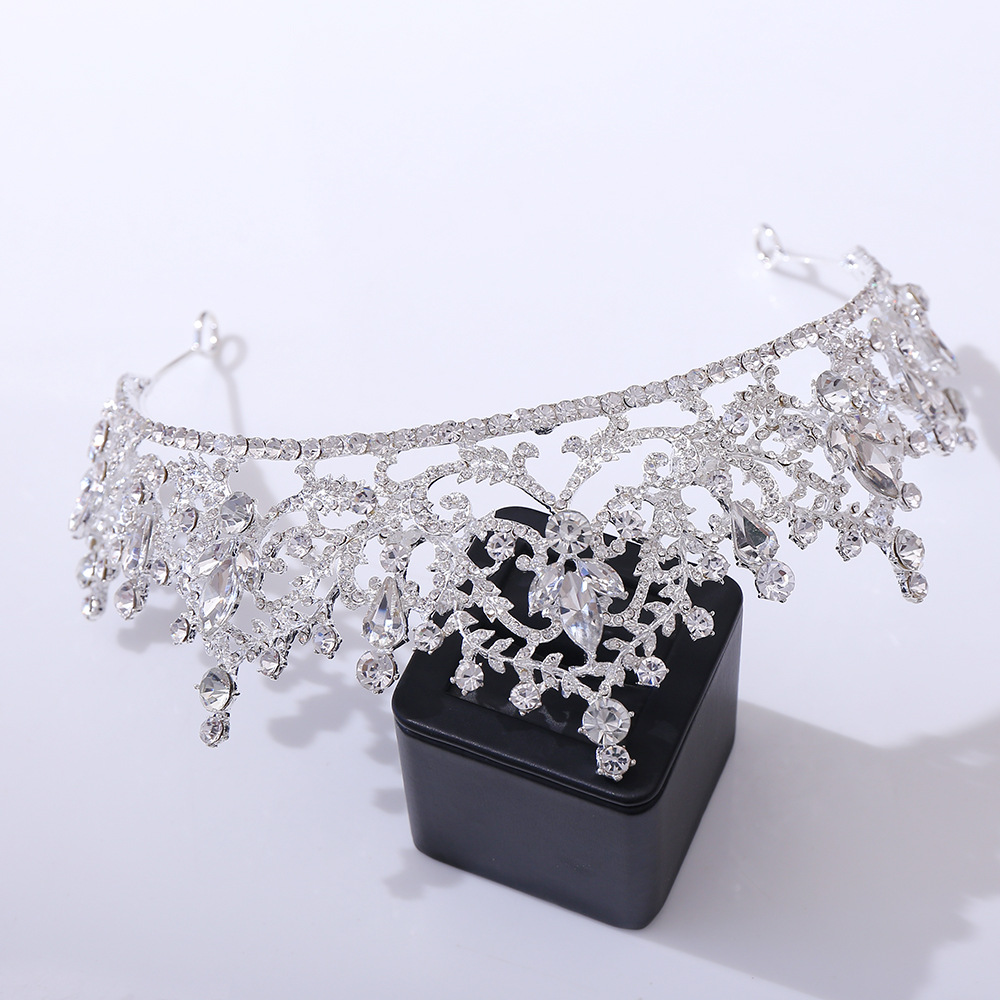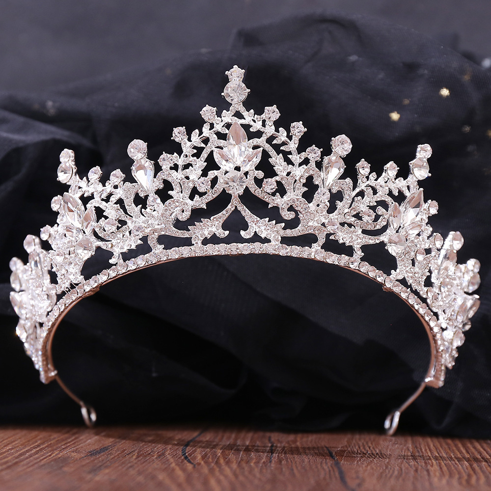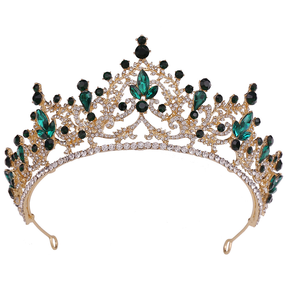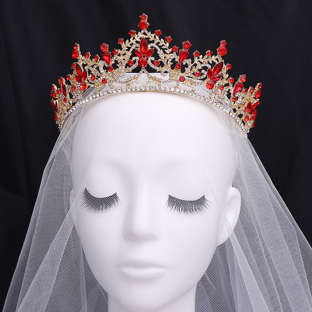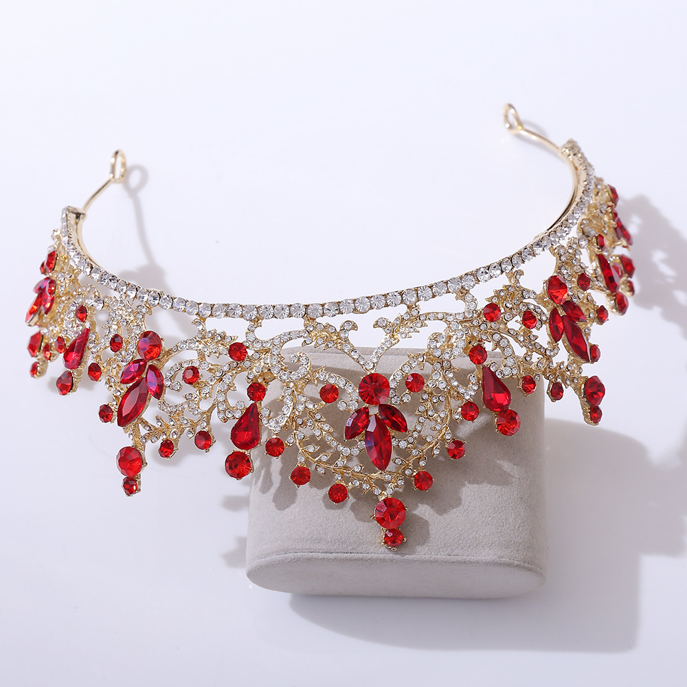 H1368 Gold Alloy Crown with Korean Plating Style and Red Water Diamond for Wedding, Bridal, Anniversary, Promotion and Festival