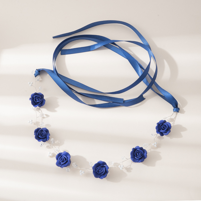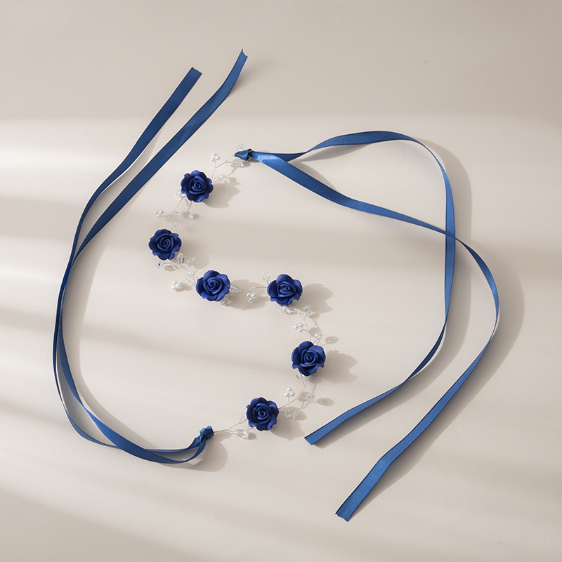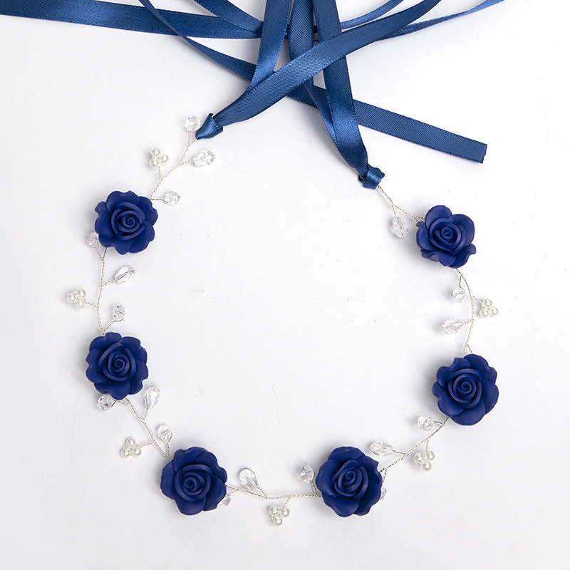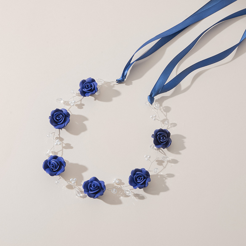 Soft Clay Blue Rose Handmade Pearl Soft Chain Hair Band Hair Accessories for Weddings, Birthdays, Vacations, Holidays, Graduation, Promotions, Advertising, Employee Benefits