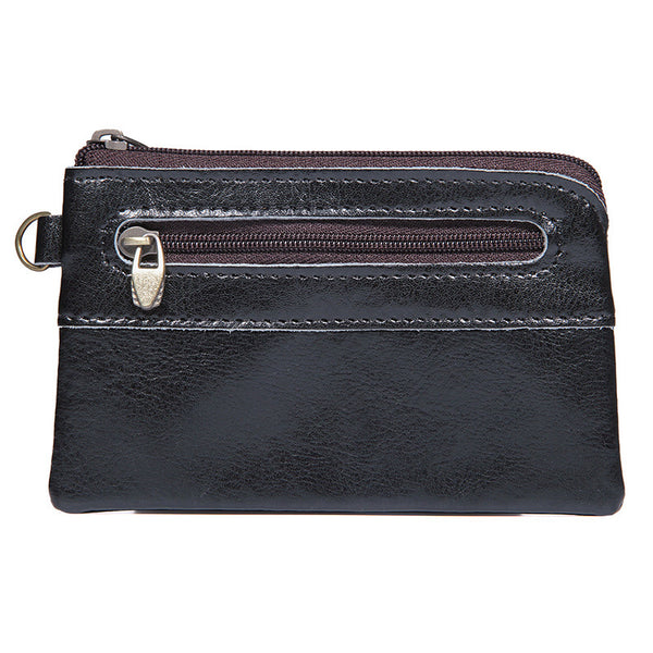 Vintage Genuine Leather Coin Bag with Multiple Card Slots and Zipper Closure