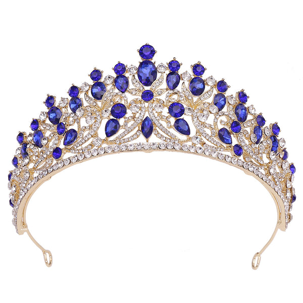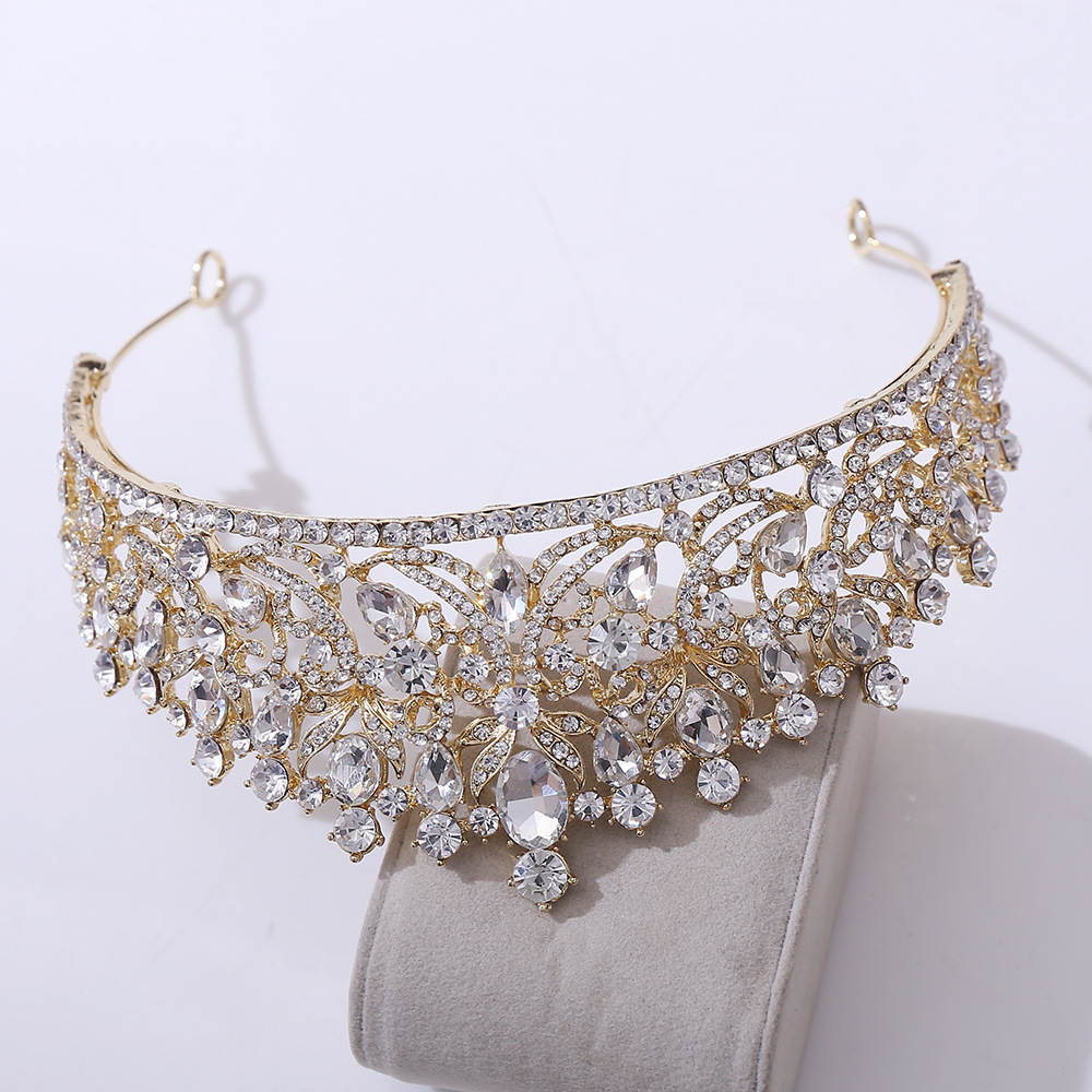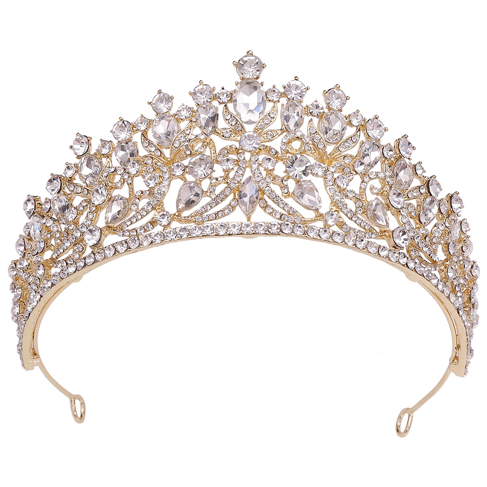 Women's Alloy Crown with Diamonds - Heavy Gold KC Gold European Style Crown Design for Weddings, Birthdays, Festivals, Anniversaries, Opening Ceremonies, Awards Ceremonies and Public Policies