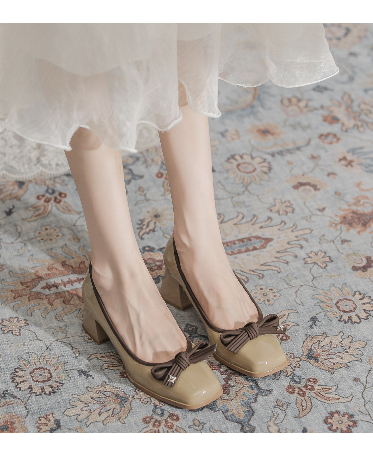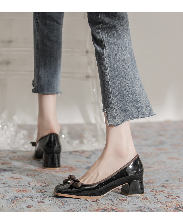Women's Fashion Mary Jane Heels with PU Sole, Superfine Leather Upper, Butterfly Knot, Medium Heel Height
