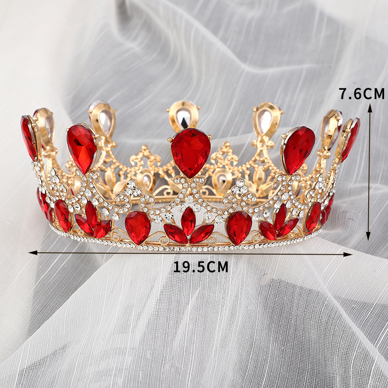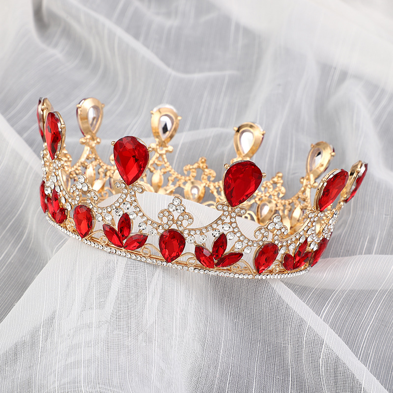 Stunning K9 Alloy Crown Jewelry with Red Zircon for Brides, Weddings and Gifts
