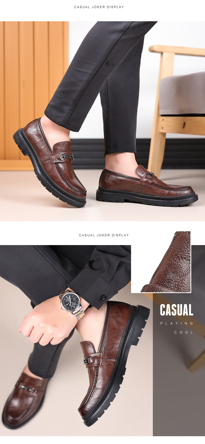 - ["PU leather upper for durability and breathability","Low heel for a comfortable fit","Anti-slip rubber outsole for added traction","Suitable for business use","Available in 2 days"]